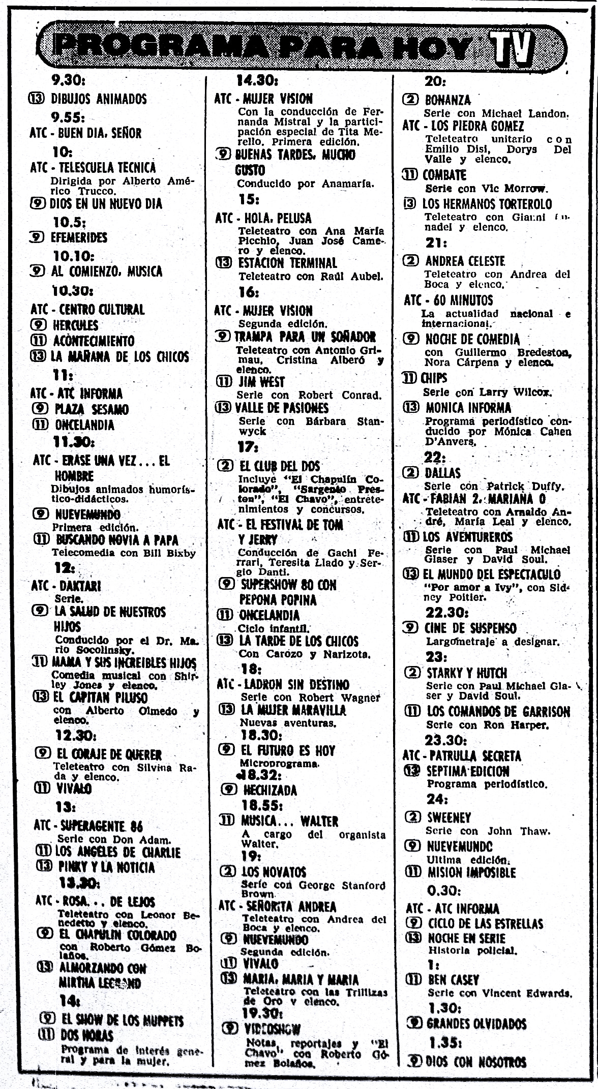 Programación TV Buenos Aires: Martes 26 de agosto de 1980