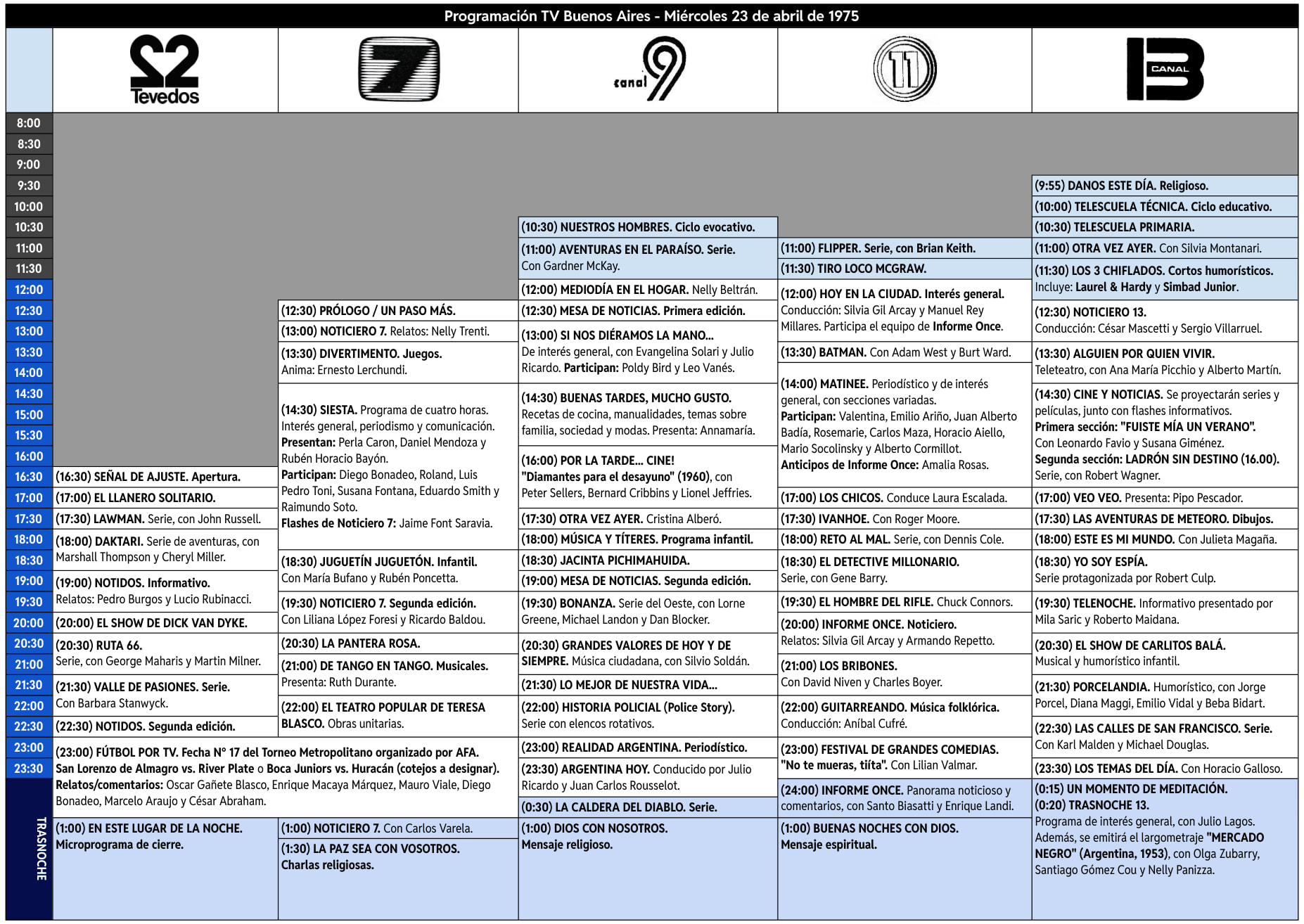 Programación TV Buenos Aires: Miércoles 23 de abril de 1975