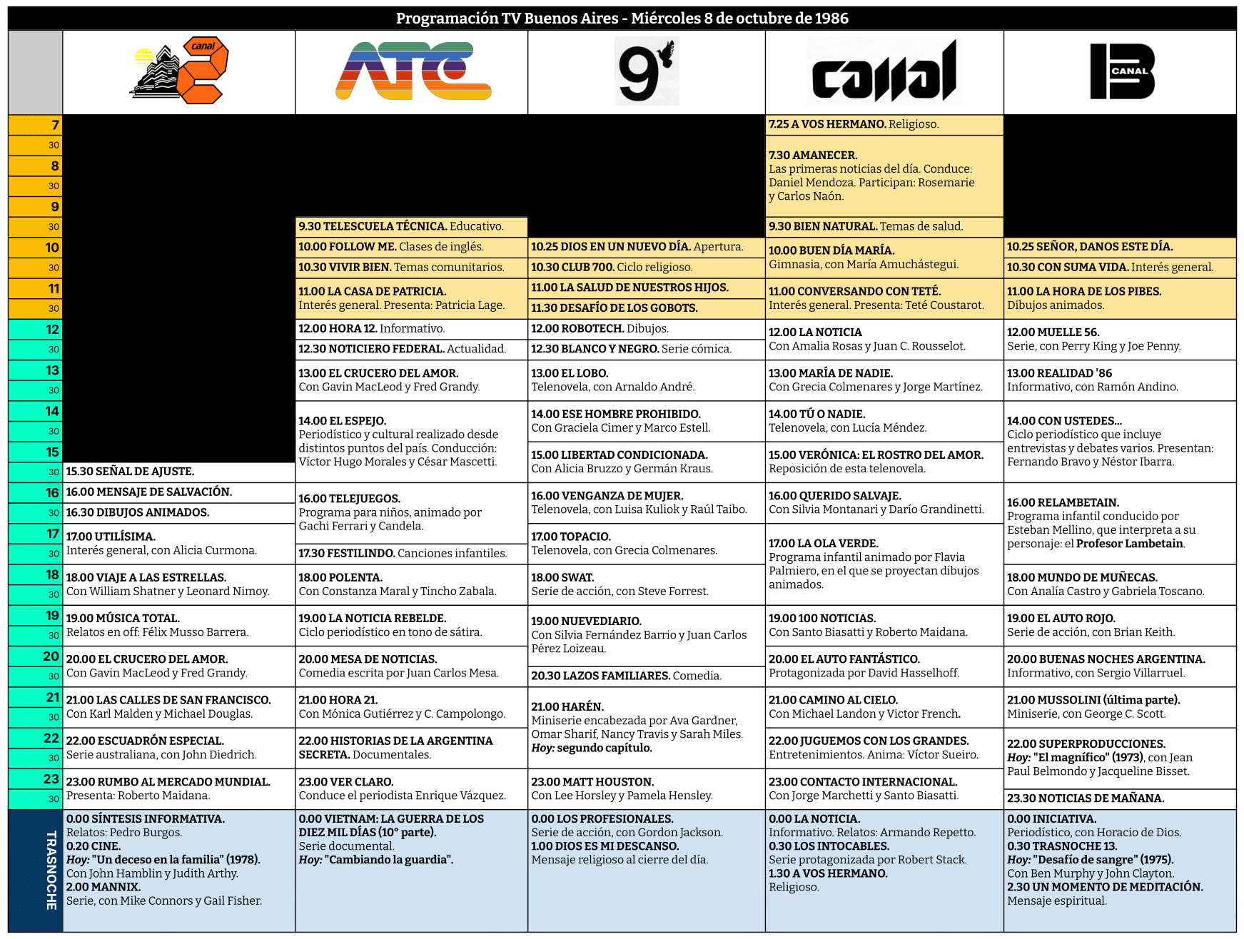 Programación TV Buenos Aires: Miércoles 8 de octubre de 1986