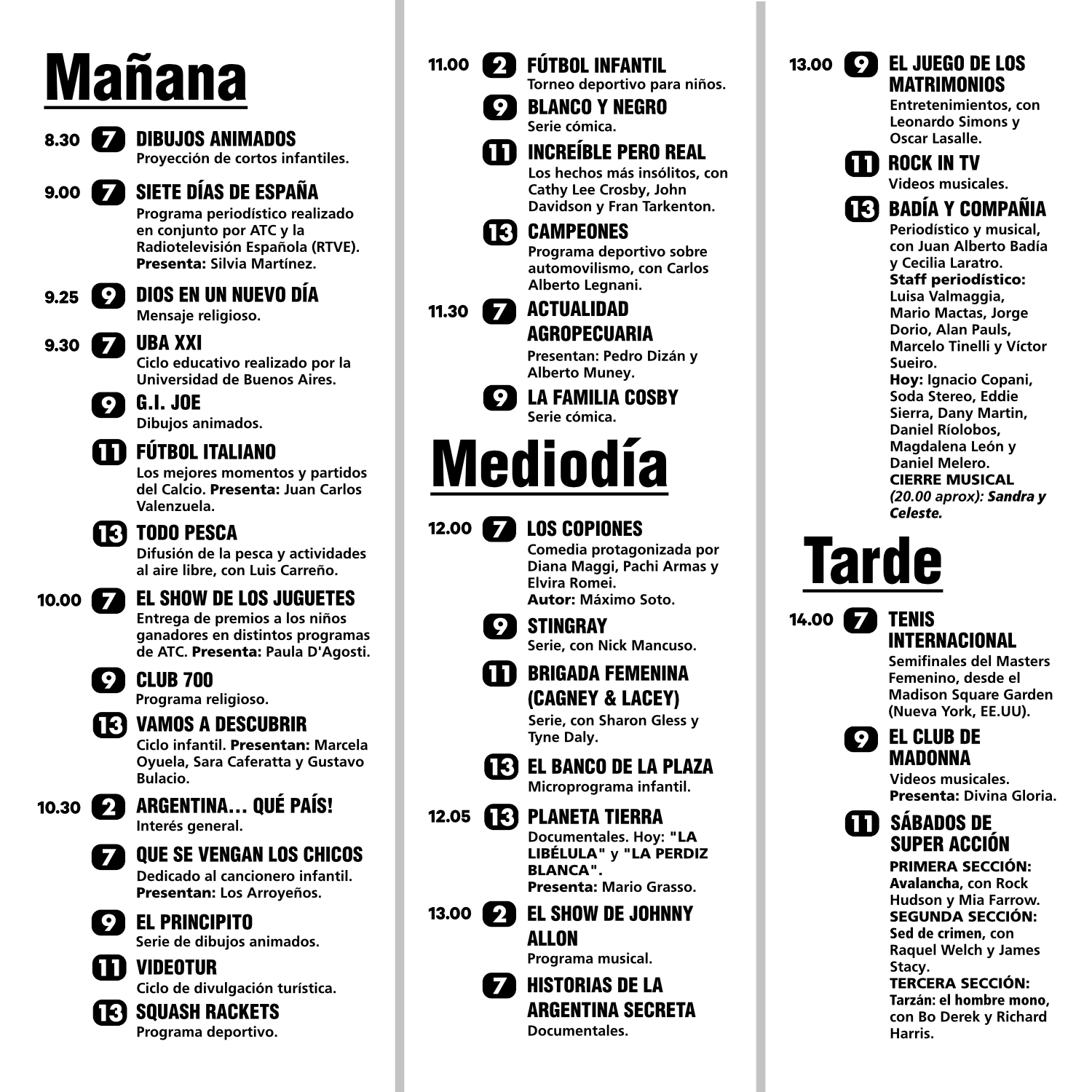 Grilla realizada con información extraída del diario Clarín Con este diseño (modo prueba piloto) intenté imitar las apariencias de las revistas televisivas de antaño.