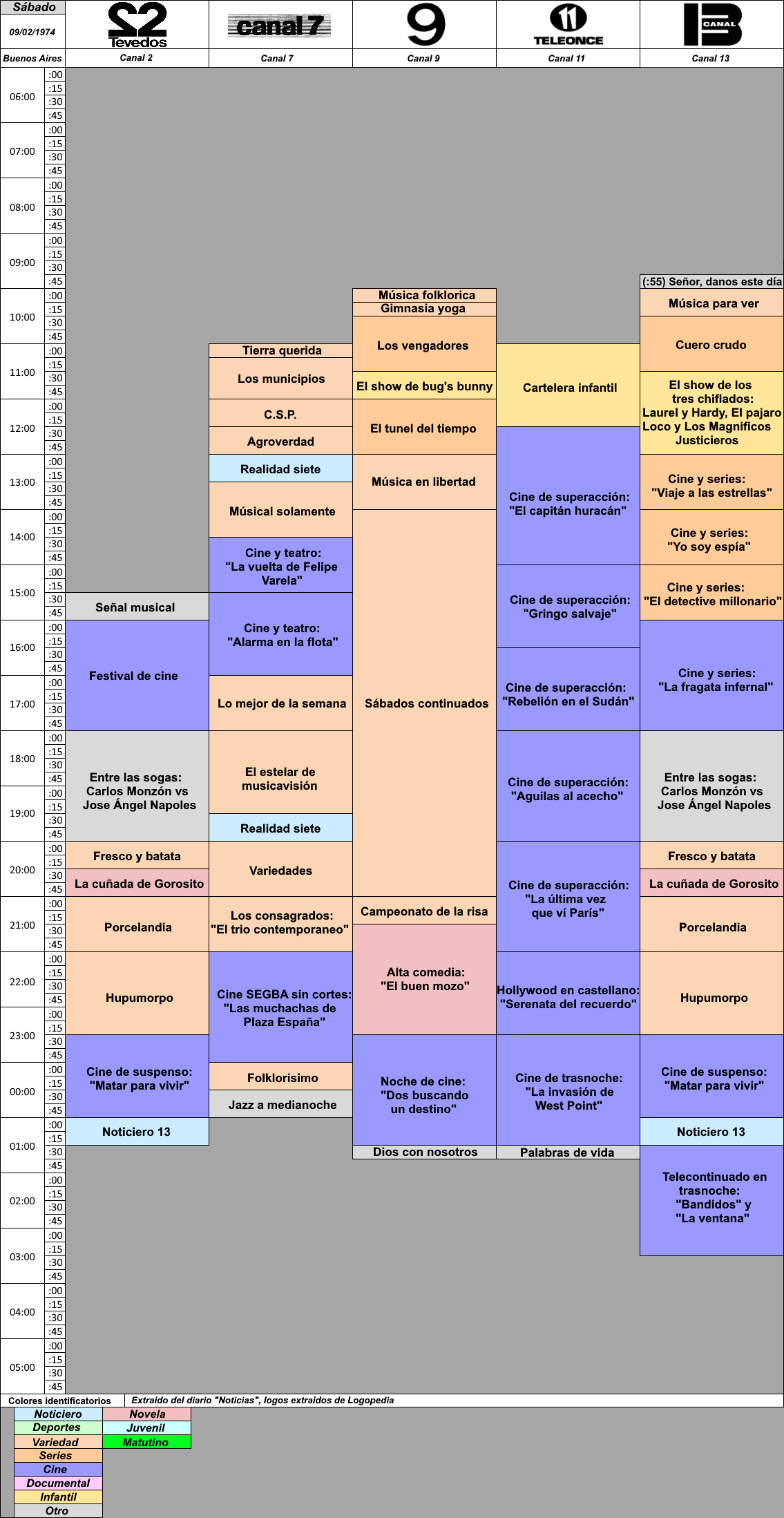 Programacion TV Buenos Aires: Sabado 9 de Febrero de 1974