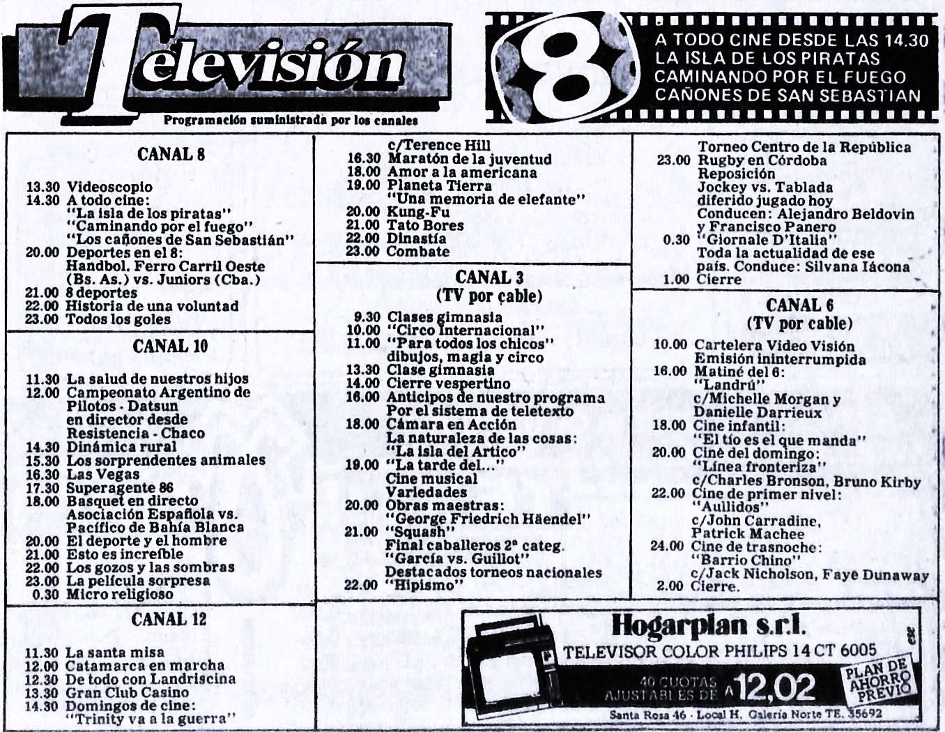 Programación TV Córdoba: Domingo 22 de septiembre de 1985