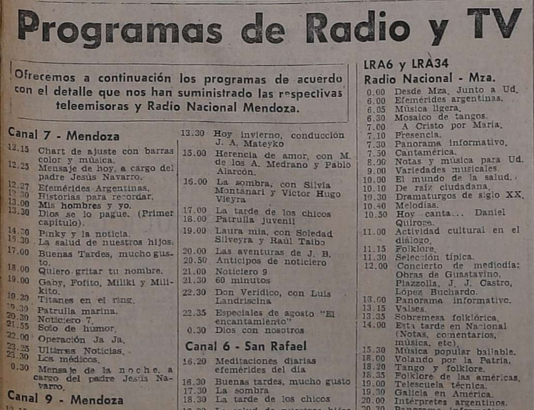 Programación TV Mendoza - 17 de agosto de 1981 (incompleto)