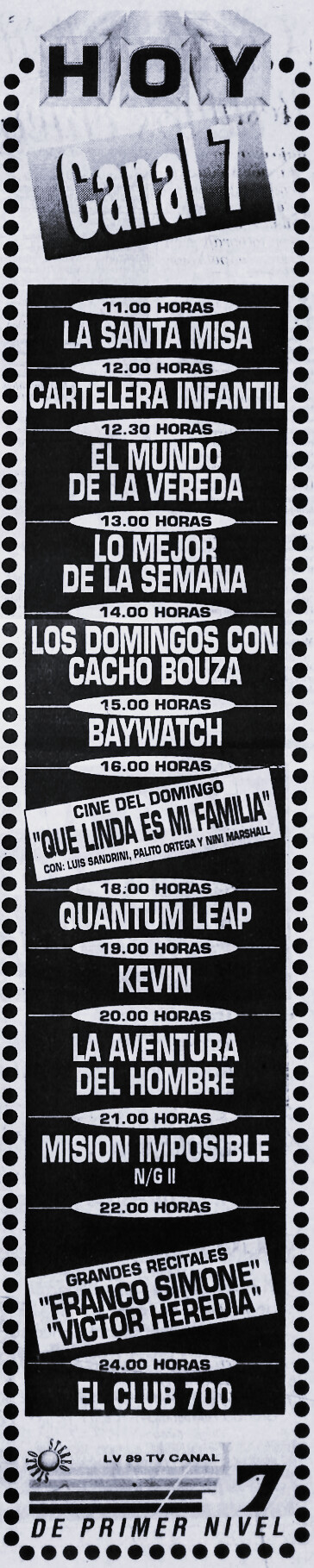 Programación TV Mendoza: Domingo 28 de noviembre de 1993