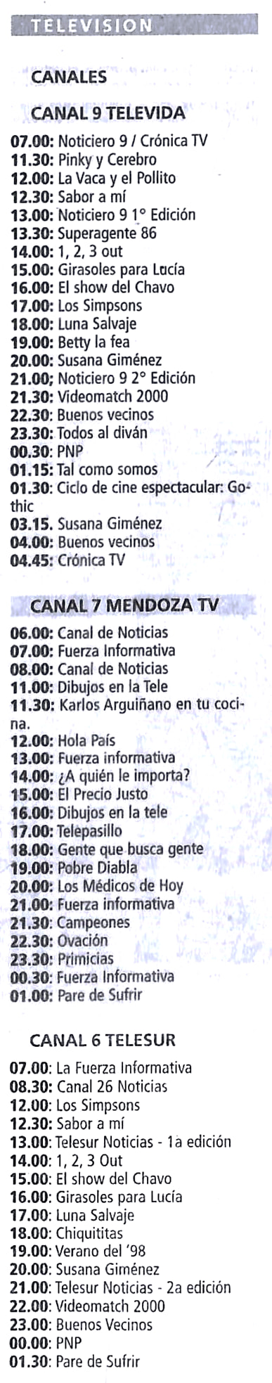 De aquella el 7 ya era Canal 7 a secas. Aunque el nombre Mendoza TEVE ya había sido quitado a 100% en 1998, el canal nunca lo escribió como Mendoza TV.