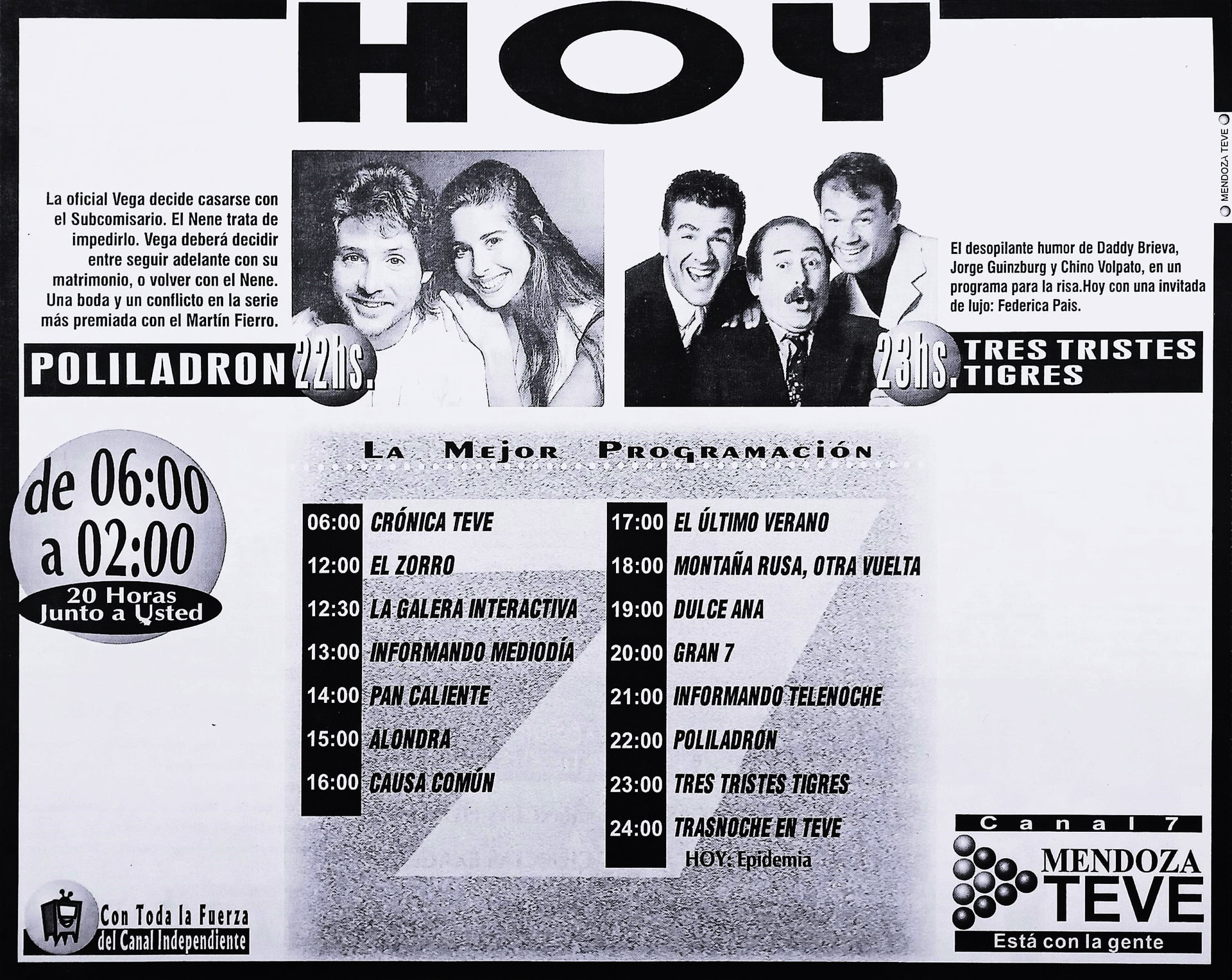 Programación TV Mendoza: Martes 7 de mayo de 1996