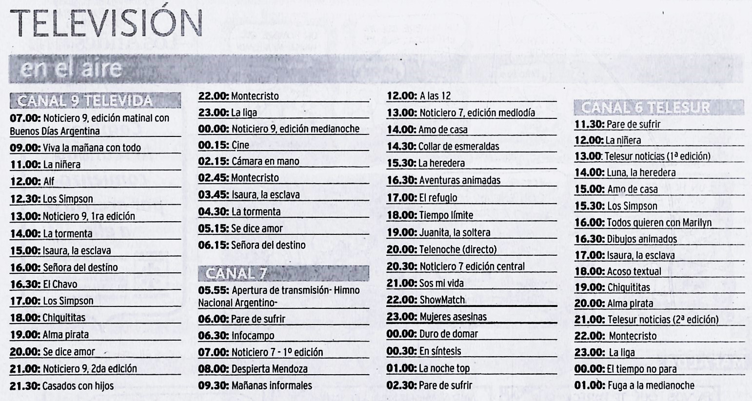 Grilla extraída del diario Los Andes