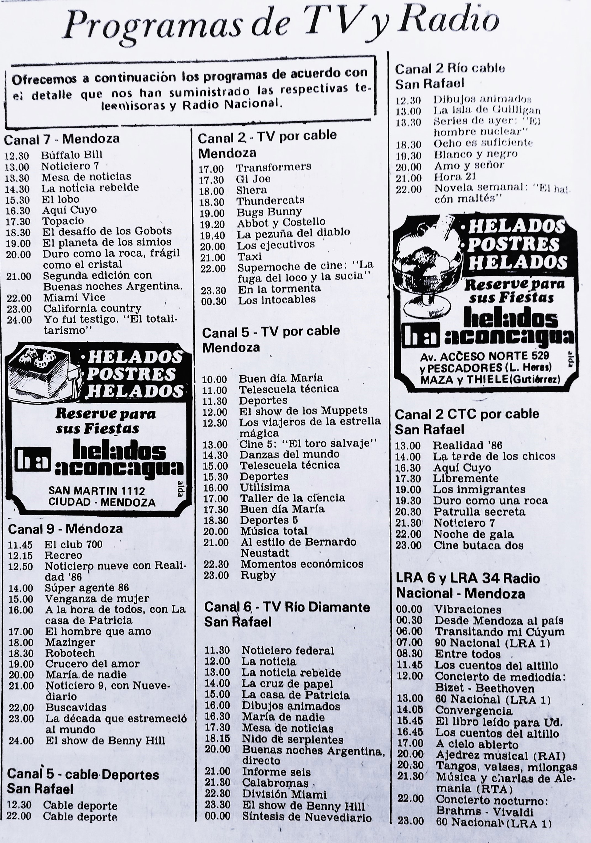 Programación TV Mendoza: Miércoles 17 de diciembre de 1986