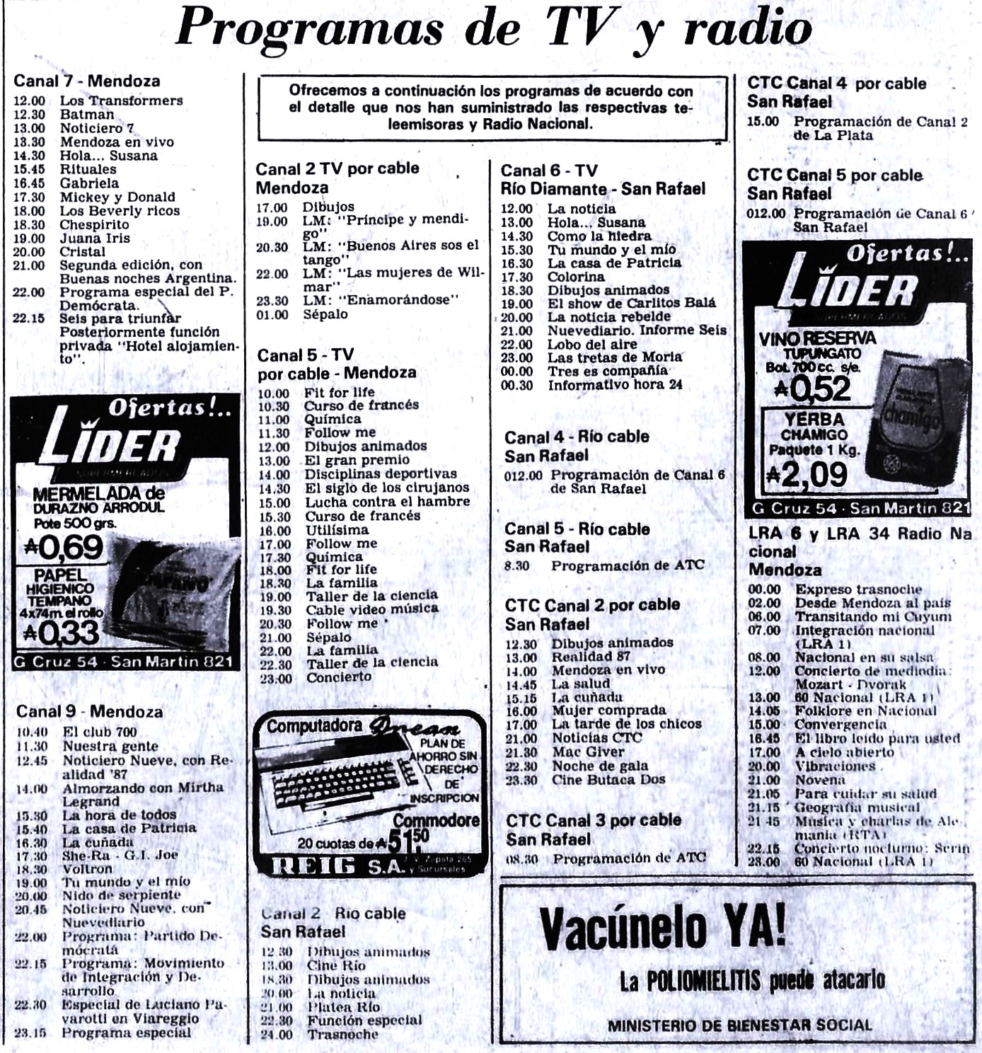 Contiene la primitiva programación del cable, donde de aquella tenían repetidoras de ATC. El canal 5 del cable de Mendoza parecía ser educativo.