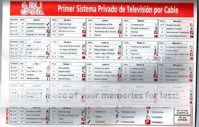 En mi caso, yo lo vi los años siguientes, donde la programación no era tan variada como se muestra en la imagen.