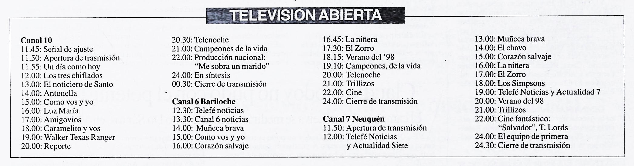 Interesante que en esa época el 6 tenía la programación de Telefe y de Canal 13.