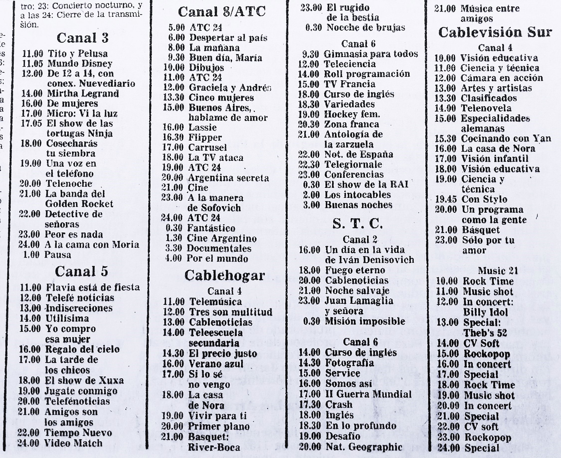 Programación TV Rosario: Martes 5 de noviembre de 1991