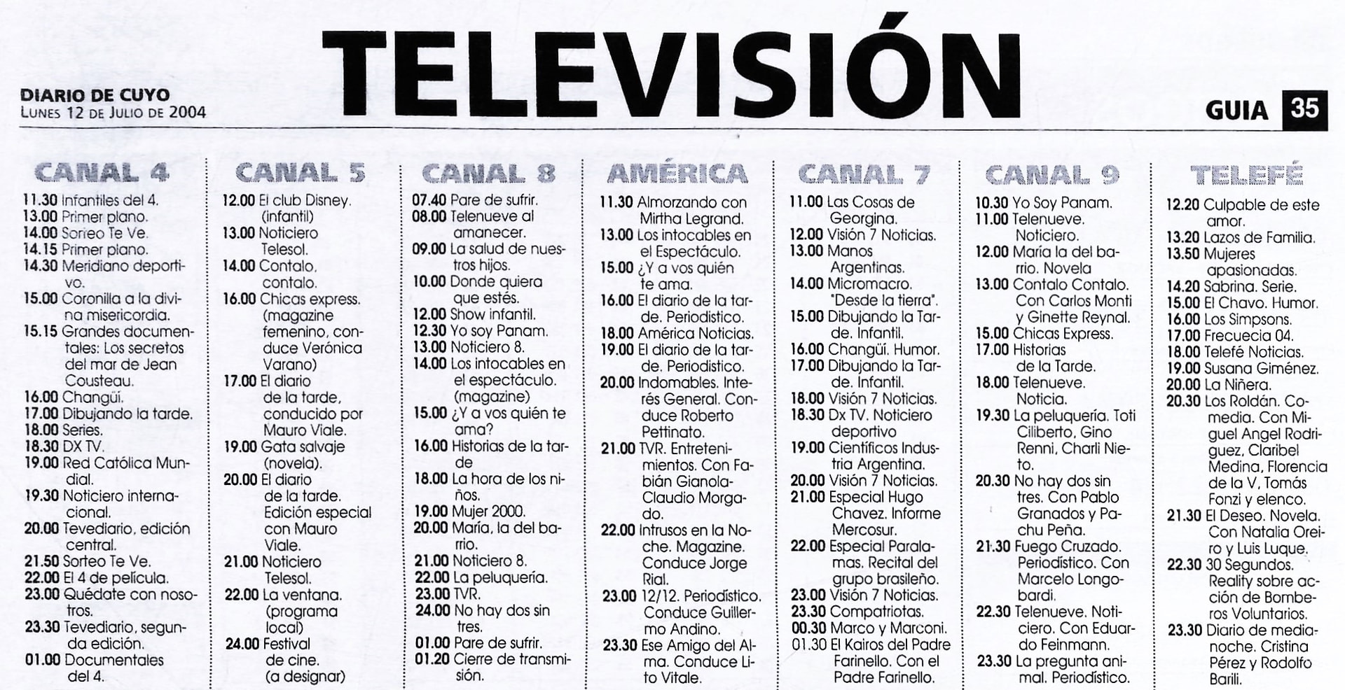 Programación TV San Juan: Lunes 12 de julio de 2004