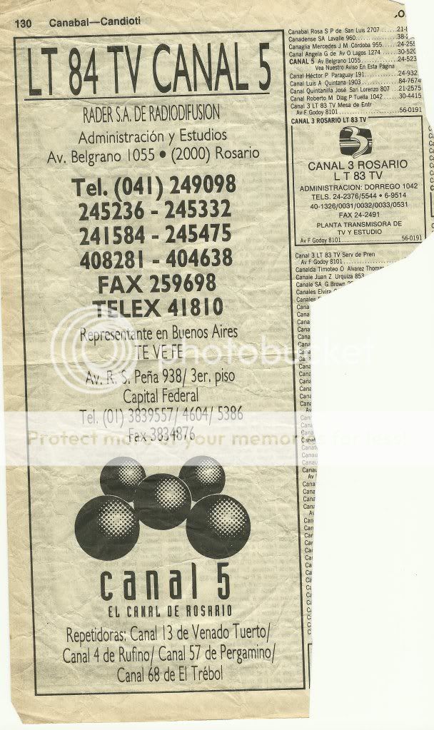 publicidad grafica canal 5 rosario 1993-1994