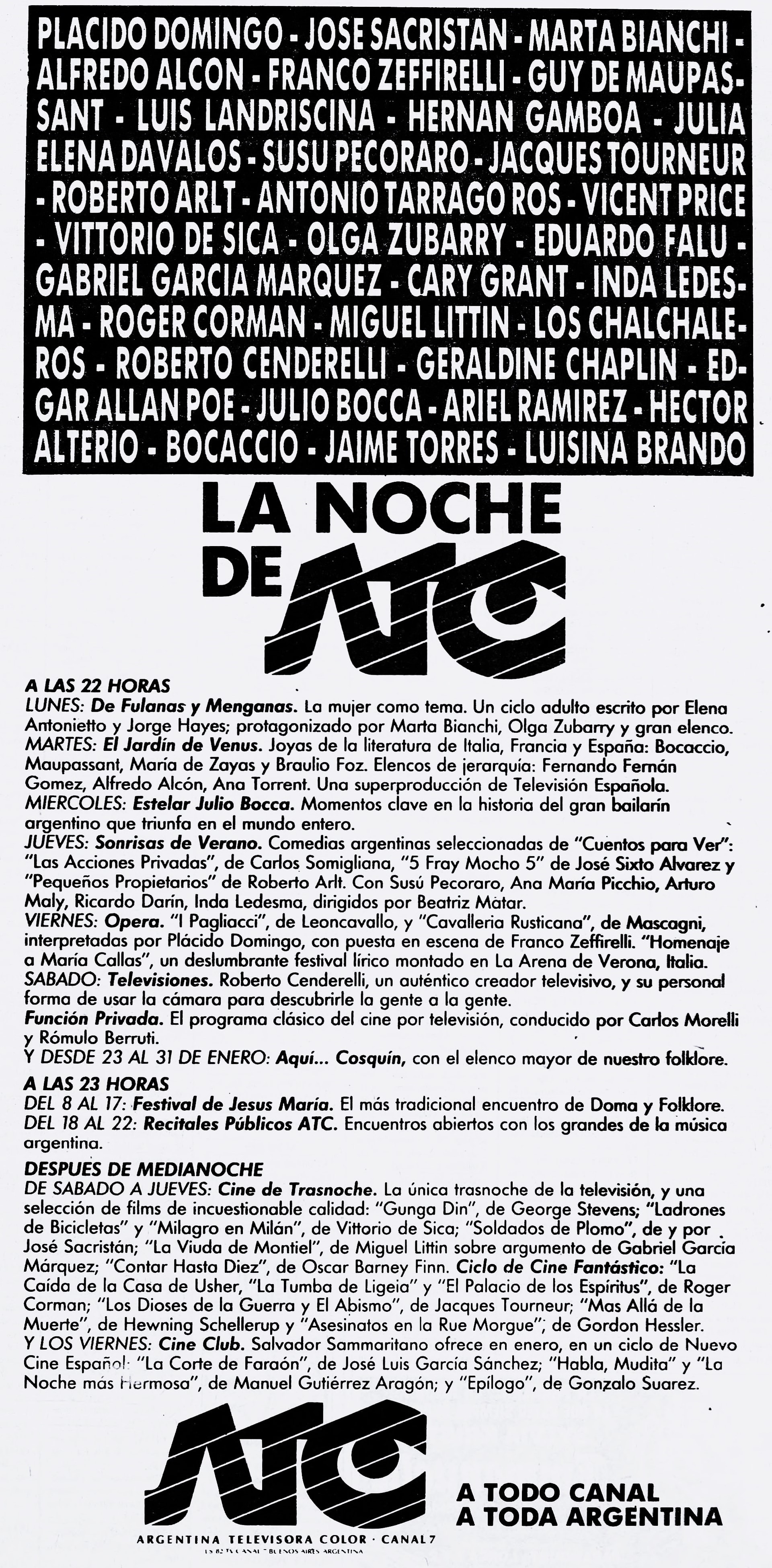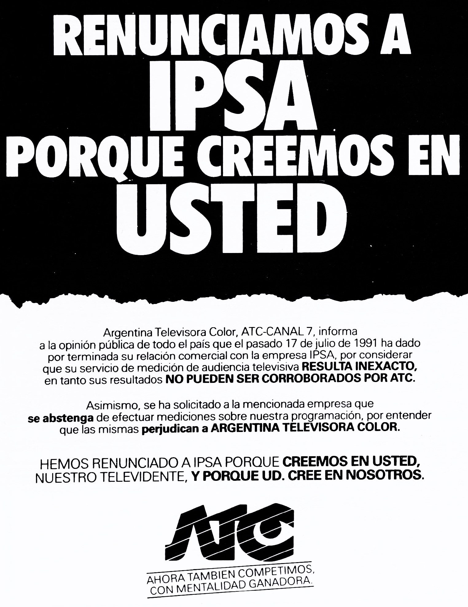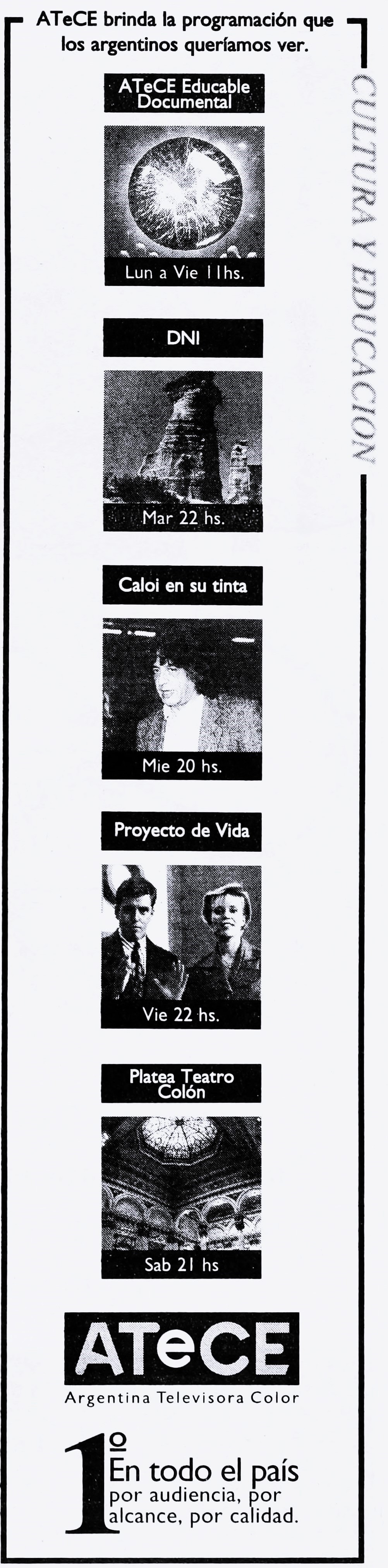 Más avisos de ATC, pertenecientes a los años 1988, 1991, y los dos últimos son de 1996 (durante el efímero ATeCE). Todos ellos fueron extraídos del diario Página/12.