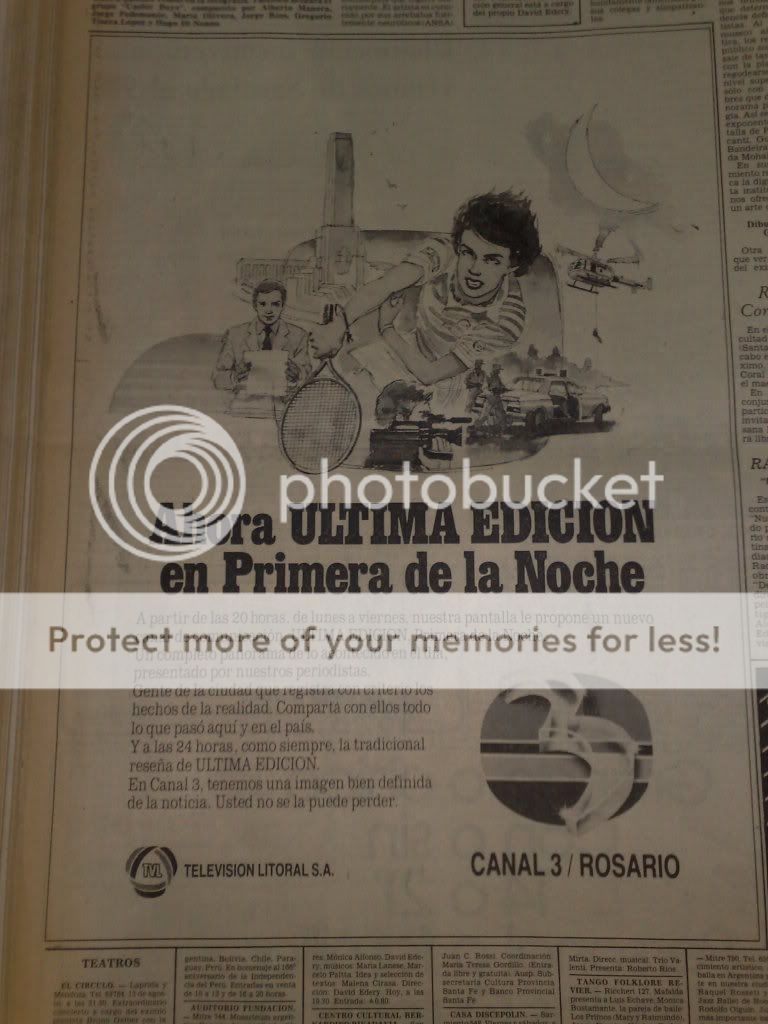 Publicidad grafica de LT 83 TV Canal 3 Rosario de 1987