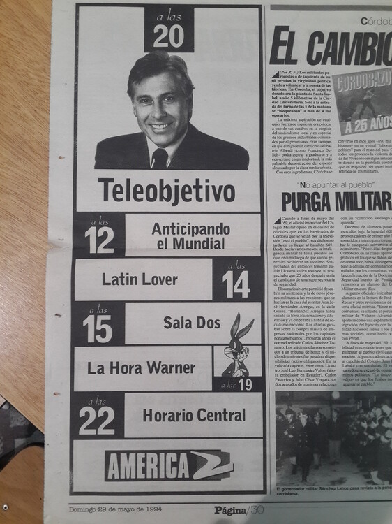 Publicidad gráfica de America 2 del diario Pagina 12 del domingo 29 de mayo de 1994