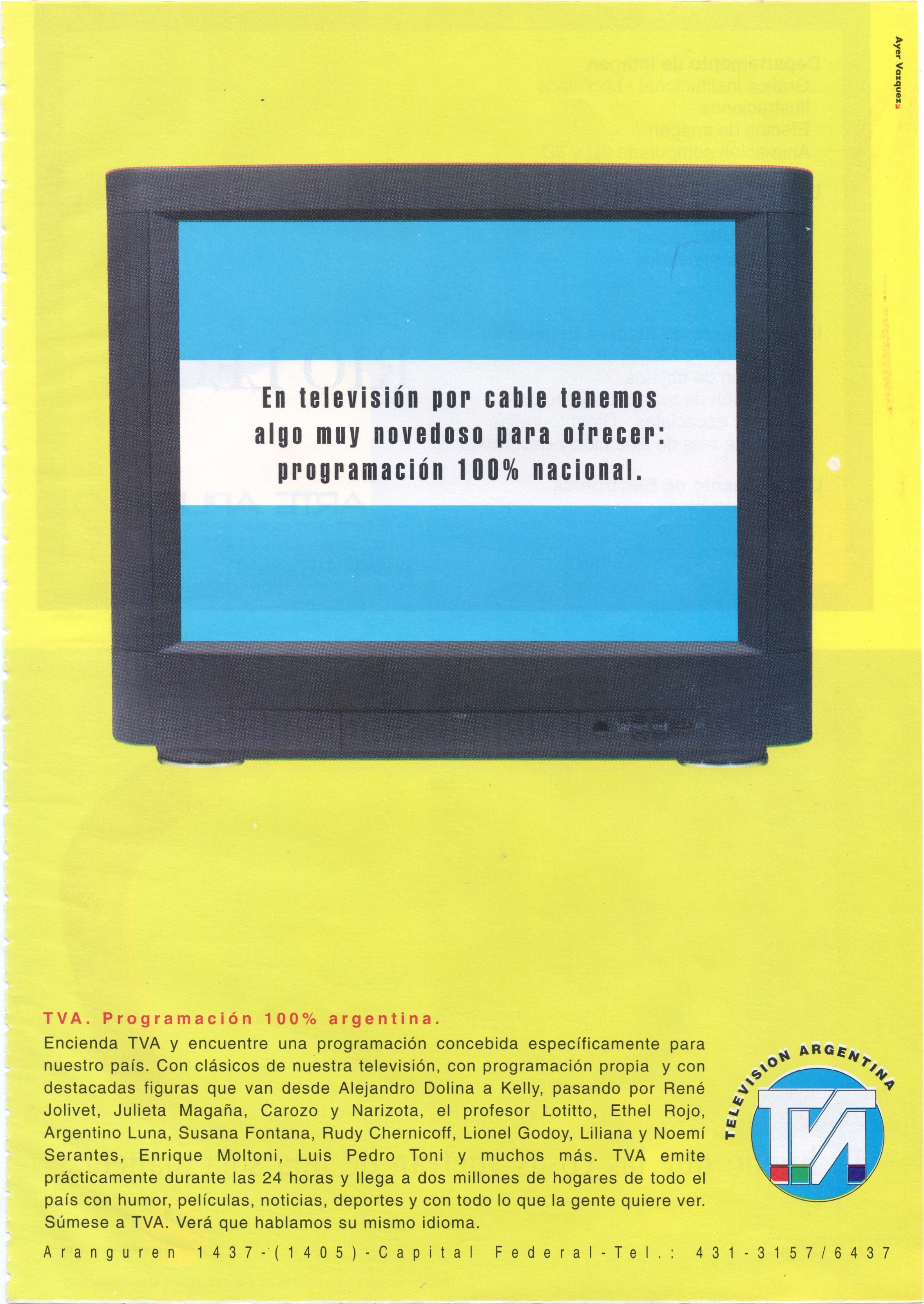 Publicidad grafica de TVA(Television Argentina) de Octubre de 1994