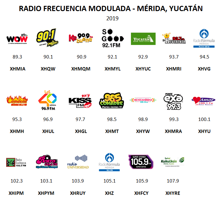 Estos son las señales que son emitidas a través de la **Radio** en** Frecuencia Modulada** siendo el día **24 de Septiembre de 2019** en la ciudad de **Mérida, Yucatán**, y área metropolitana.