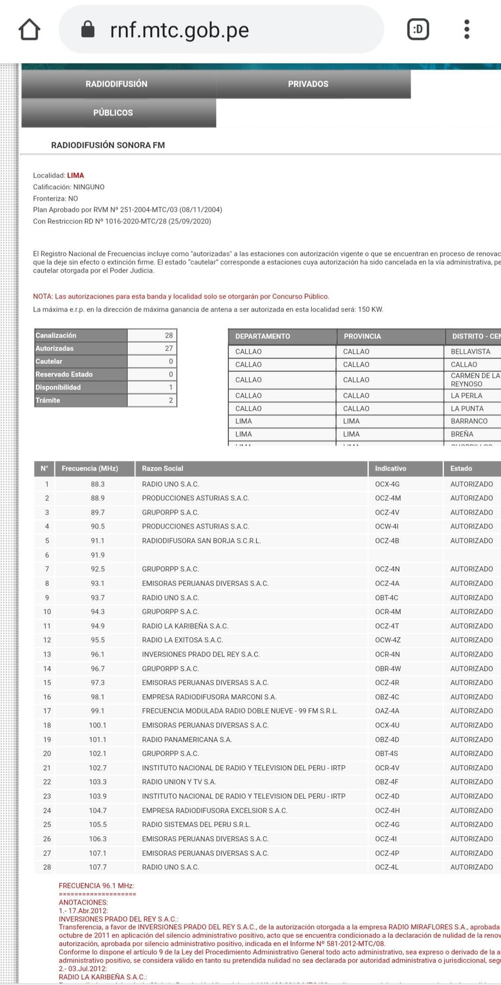 Según la página del Registro Nacional de Frecuencias ya no figura “Radio Tigre” ni “Excelsior” (este último sí está en los 104.7) u otros nombres que suele utilizar Belmont para sus frecuencias, en el casillero de los 91.9. Este figura como vacío y disponible.