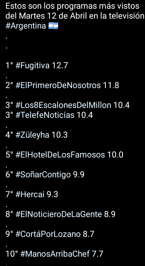 Por último, sigue cayendo "Star Channel". Si bien hizo el mismo promedio que en Marzo, de a poco se va alejando de los 20 canales de cable mas vistos.