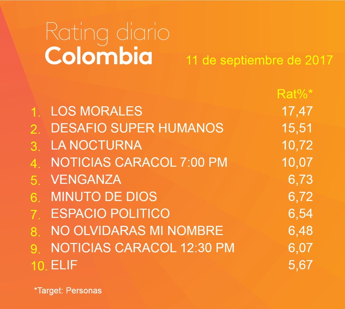 TOP 10 de los programas mas vistos de ayer 11 de Septiembre de 2017 ..