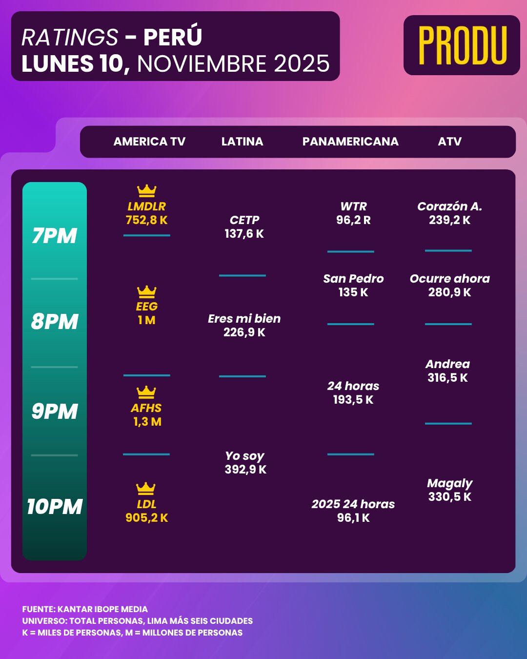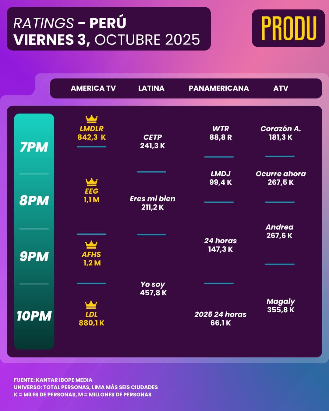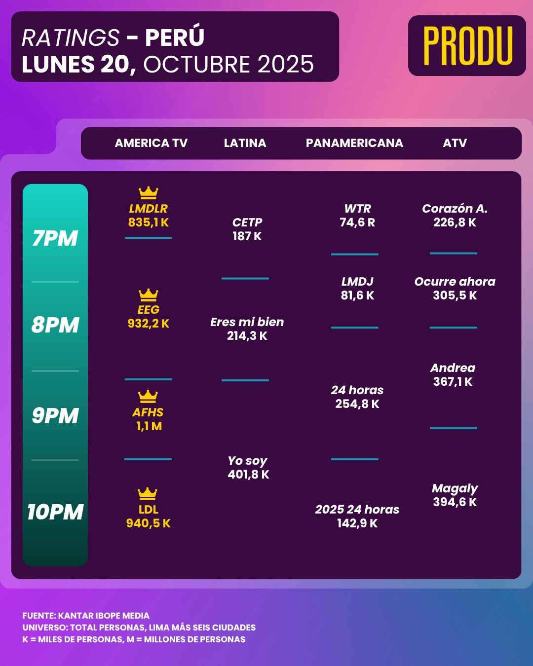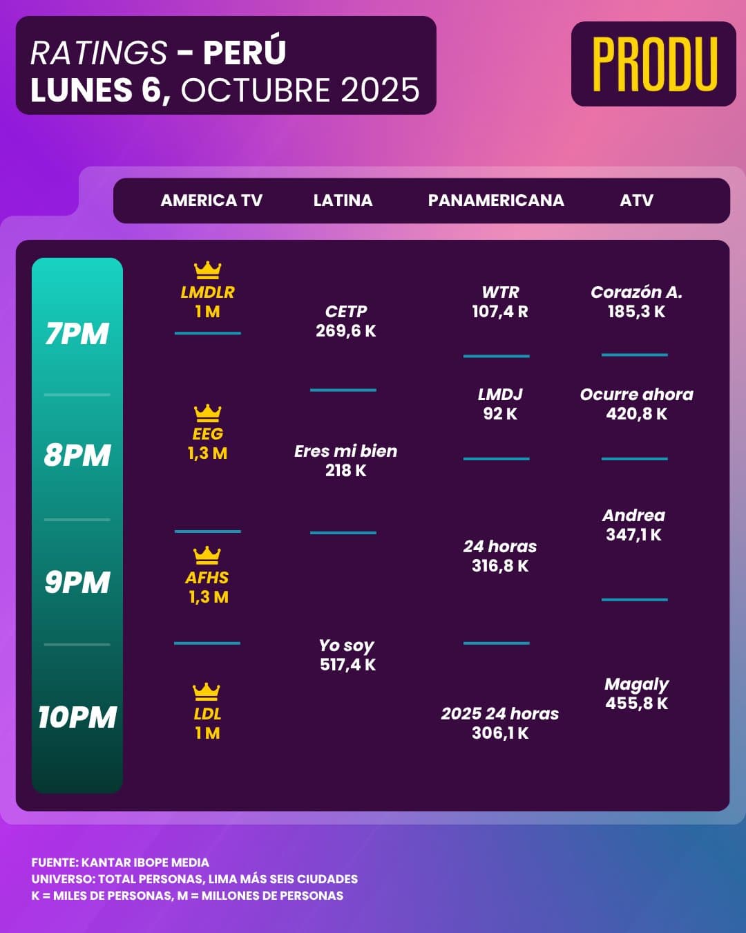 Así quedó el rating este fin de semana, la final de la 1ra temporada 2025 de Yo Soy en Latina hizo 11 puntos y lideró el sábado, y Cuarto Poder en América hizo 11.8 liderando el domingo.