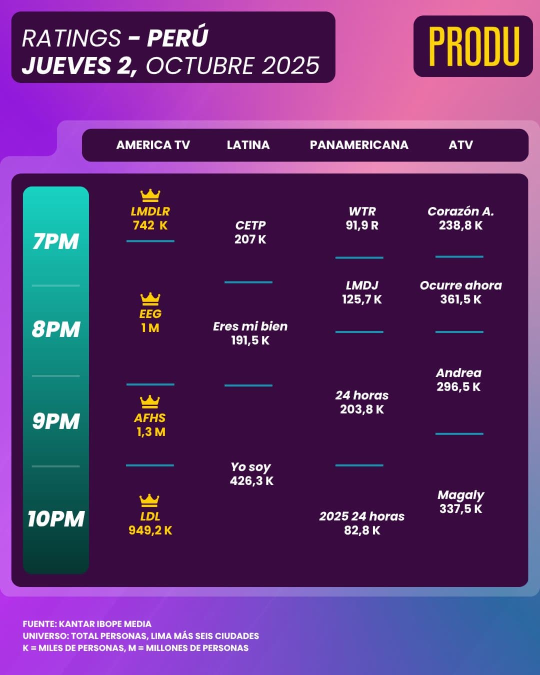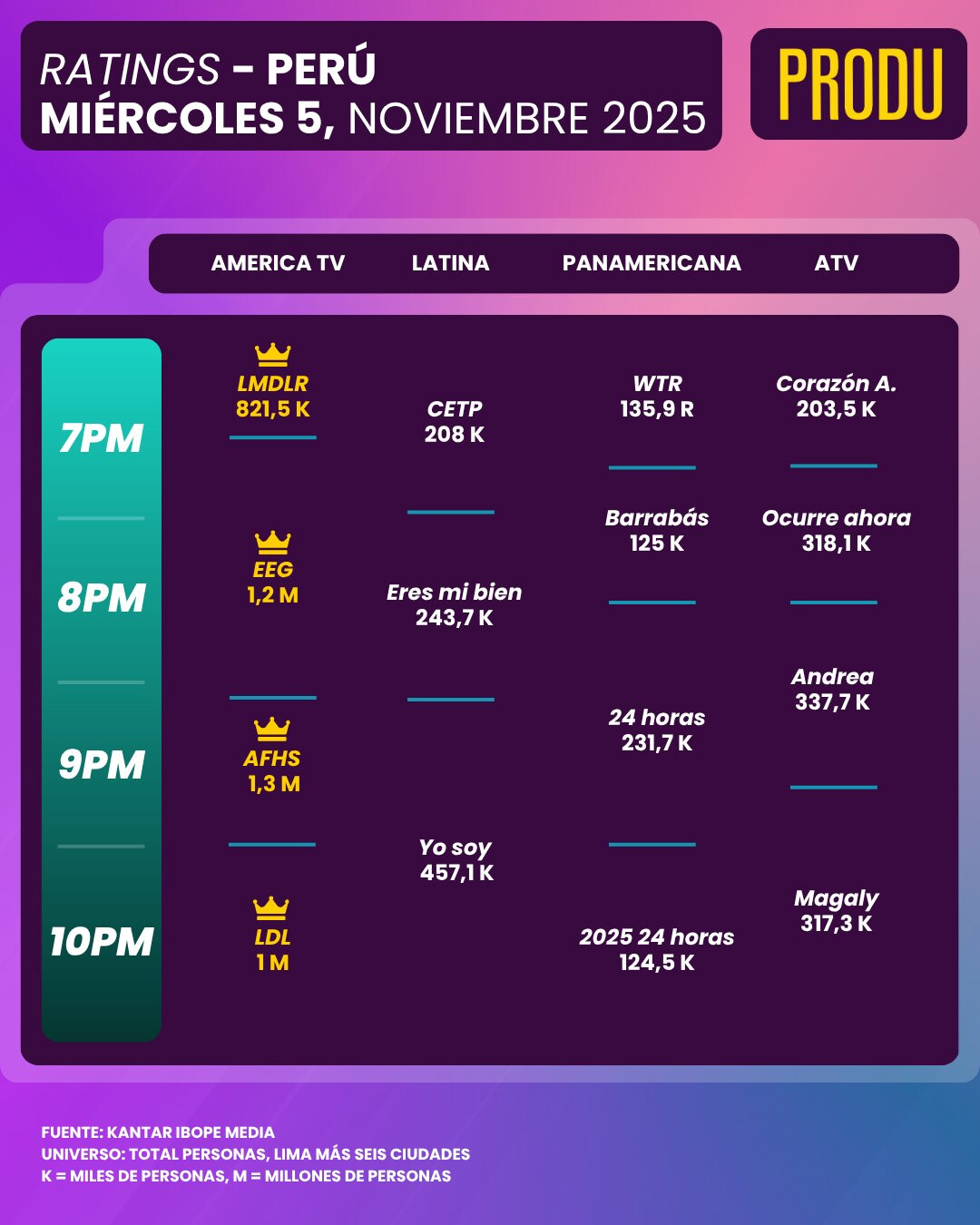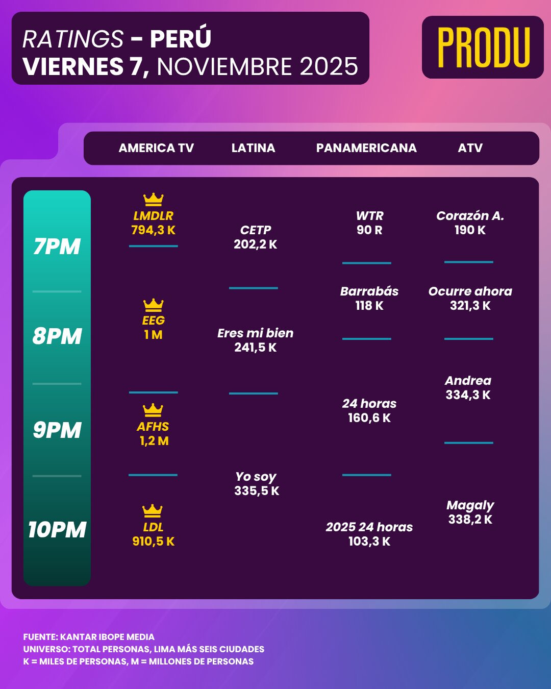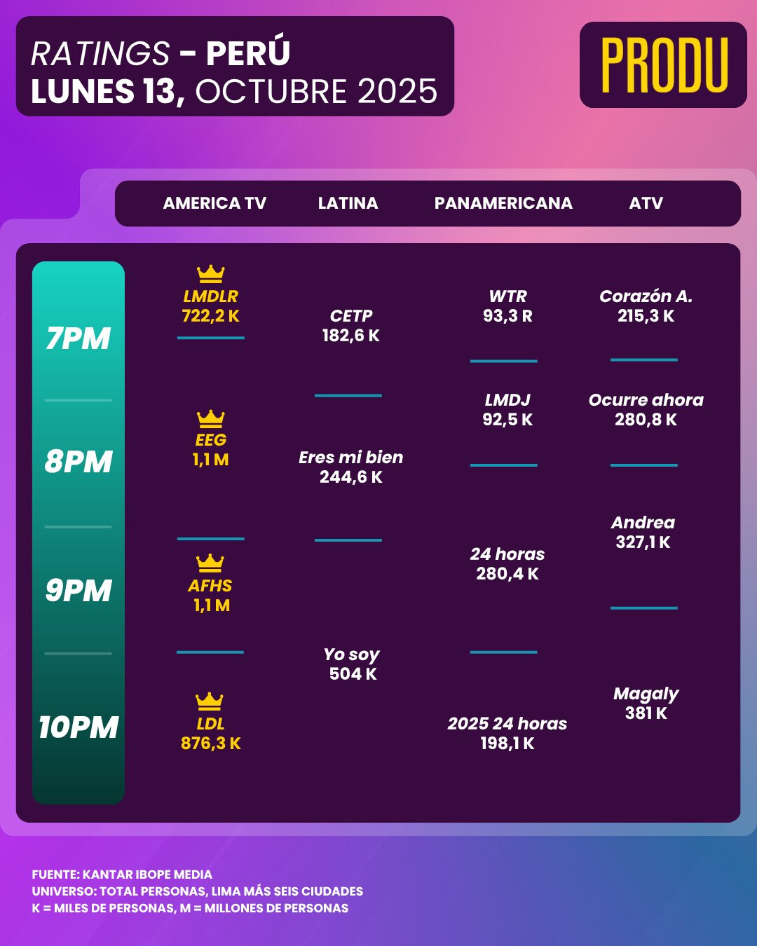 Así quedó el rating este fin de semana, la final de la 1ra temporada 2025 de Yo Soy en Latina hizo 11 puntos y lideró el sábado, y Cuarto Poder en América hizo 11.8 liderando el domingo.
