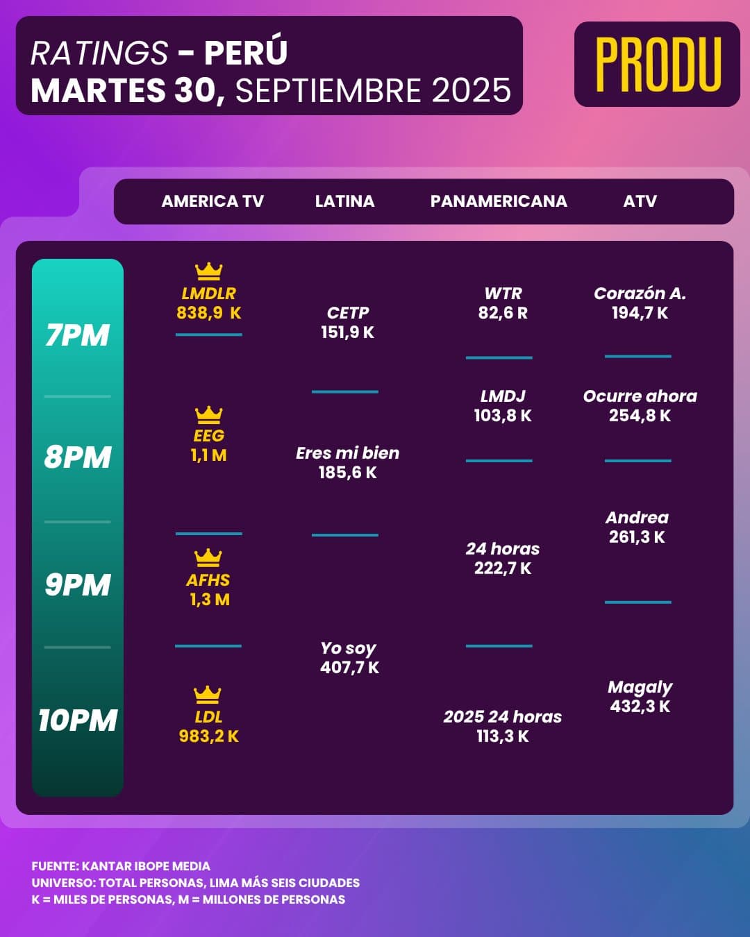Asimismo esto fue lo más visto en ATV durante aquel día: