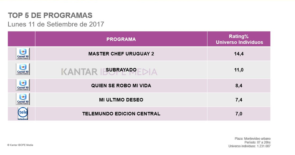 Mañana traigo los números de este lunes, donde la principal apuesta es el estreno de la adaptación uruguaya de Got Talent en Canal 10.