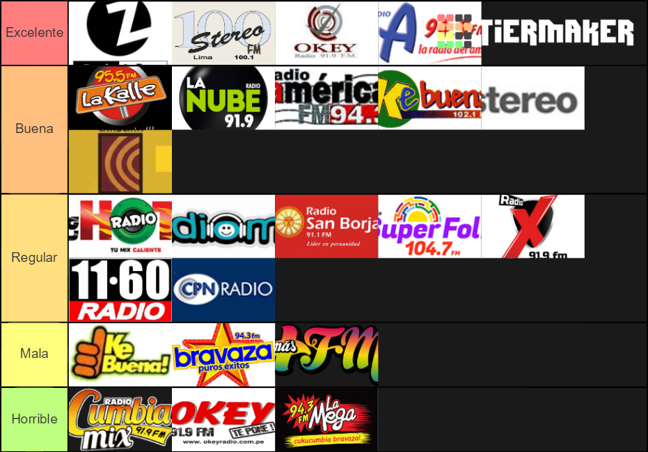 Lo que he notado es que en la mayoría de tierlists ha puesto entre las horribles (o sea, las peores) a varios nombres en común (Más FM, Cumbia Mix, La Hot, Top FM, Bravaza); y en serio esas emisoras fueron de desastrosas a intrascendentes; superadas rotundamente por sus competidoras (en la mayoría de casos).