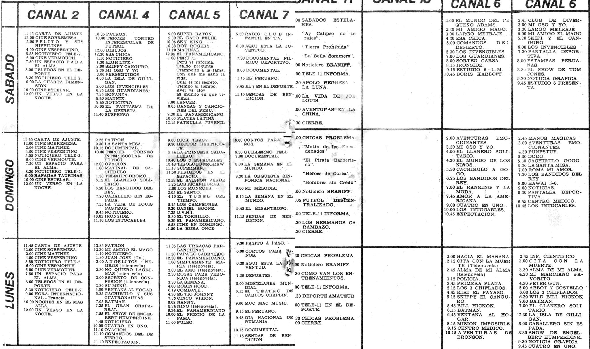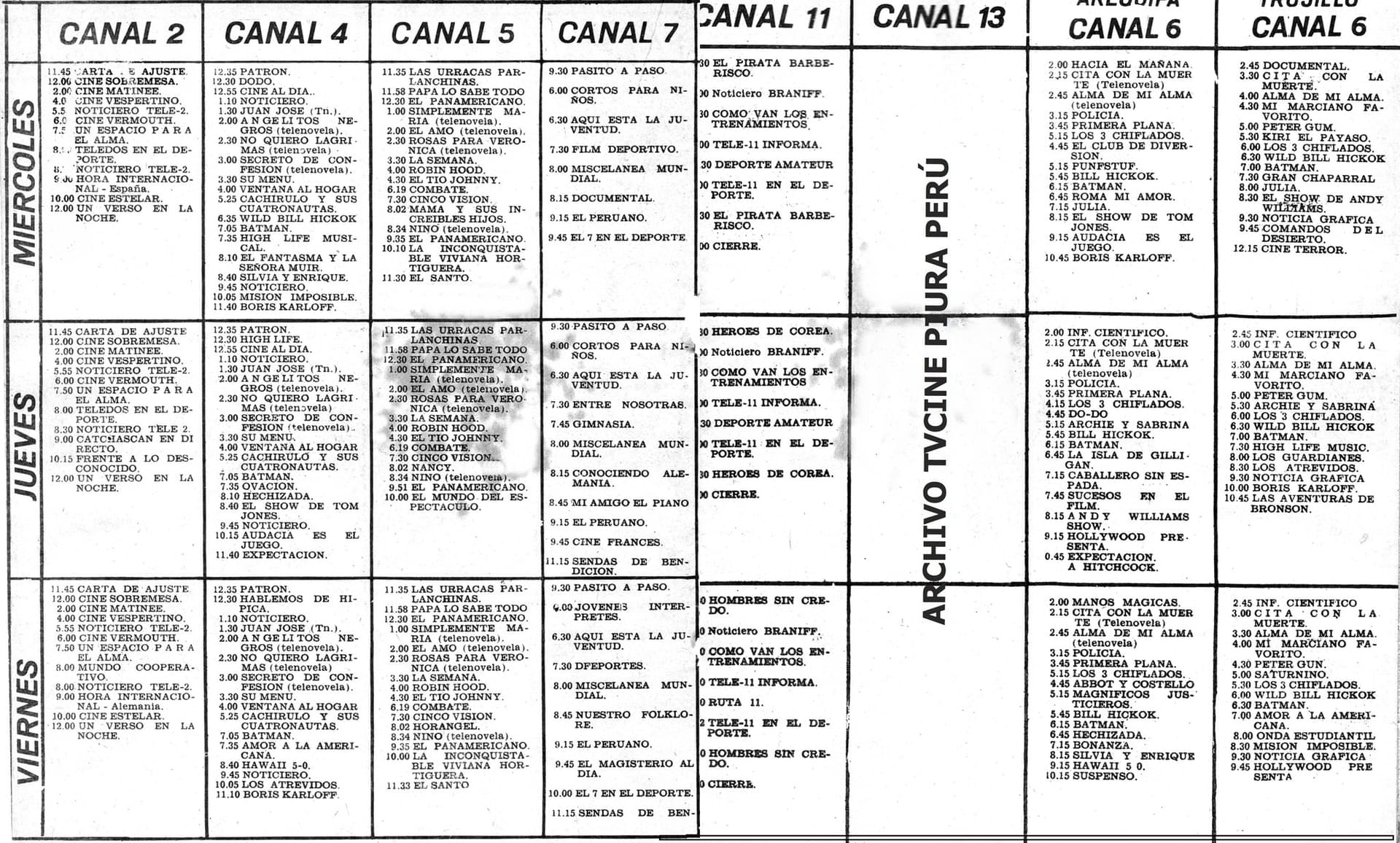 Programaciones de agosto de 1971 para Lima, Arequipa y Trujillo (las dos últimas son TV Continental y la filial trujillana de América):