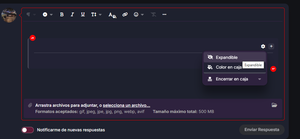Al momento de presionar “encerrar en una caja” saldrá una caja y hay un botón arriba de un engranaje presionas este y le das a expansible con eso ya se hace una caja de spoiler