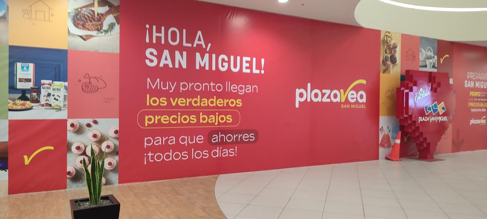 Anuncio en Plaza San Miguel sobre el nuevo Plaza Vea(Foto tomada hoy)
