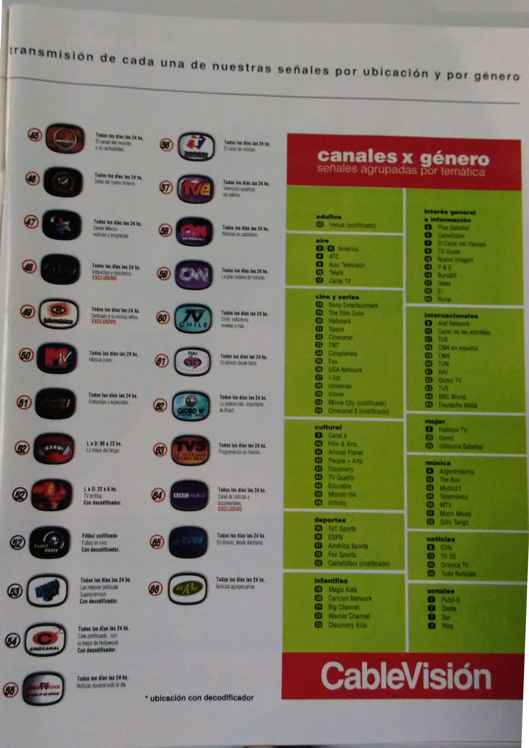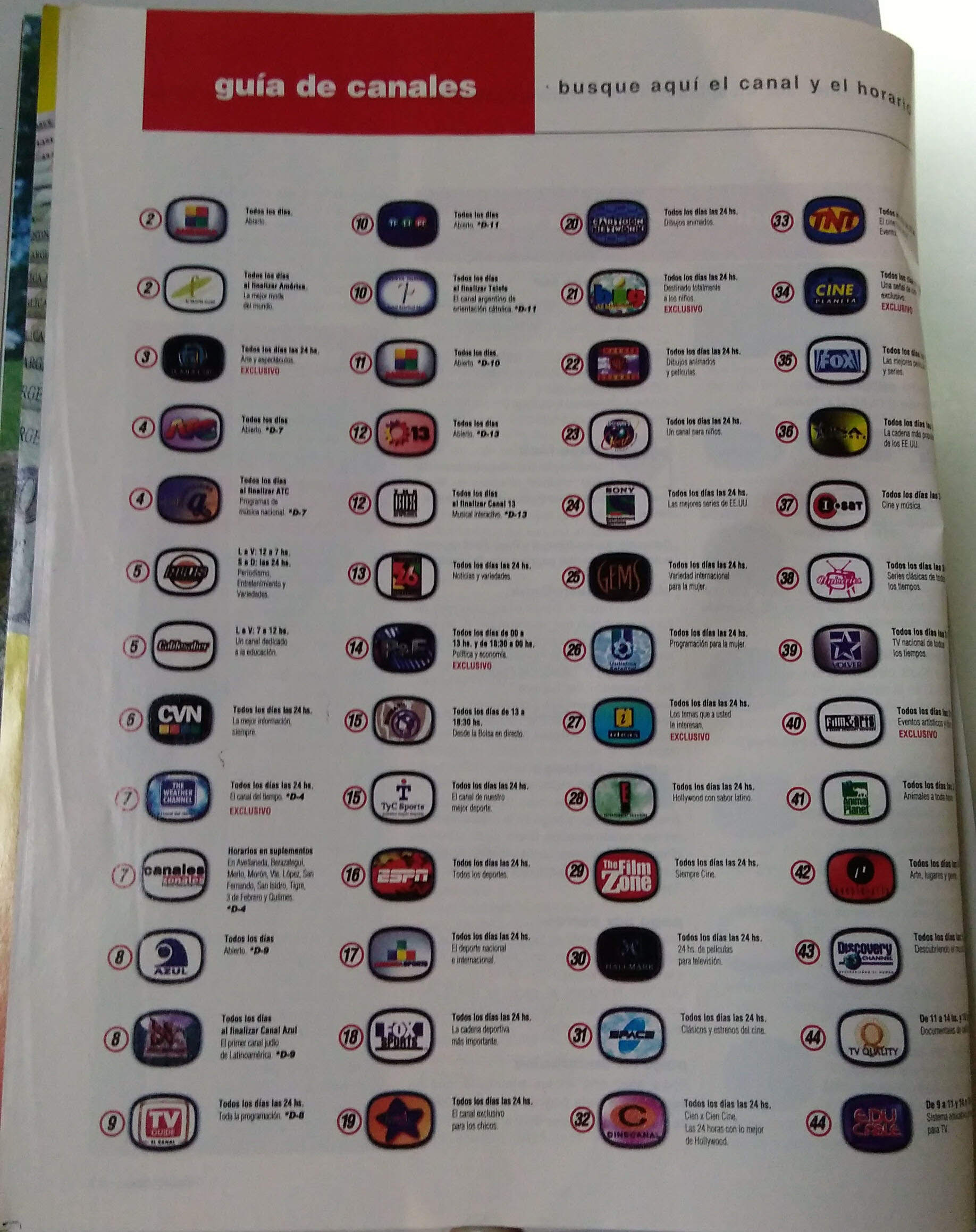 Es raro que en CV, TN, este tan lejos. Por otro lado en mi zona siempre tuvimos Multicanal, nunca entendí porque con CV siendo de la misma empresa siempre tuvieron diferentes grillas, me refiero a canales y ubicación de los mismos. También siempre me llamo la atención la posición de los canales de noticias, en MC estaban mezclados con los canales de cine premium. Todo hasta que ambas empresas se unificaron y usaron todo igual, creo que la unificación de grillas de MC y CV se dio recién en el 2007 cuando separaron todo por género y dieron comienzo a la era digital.