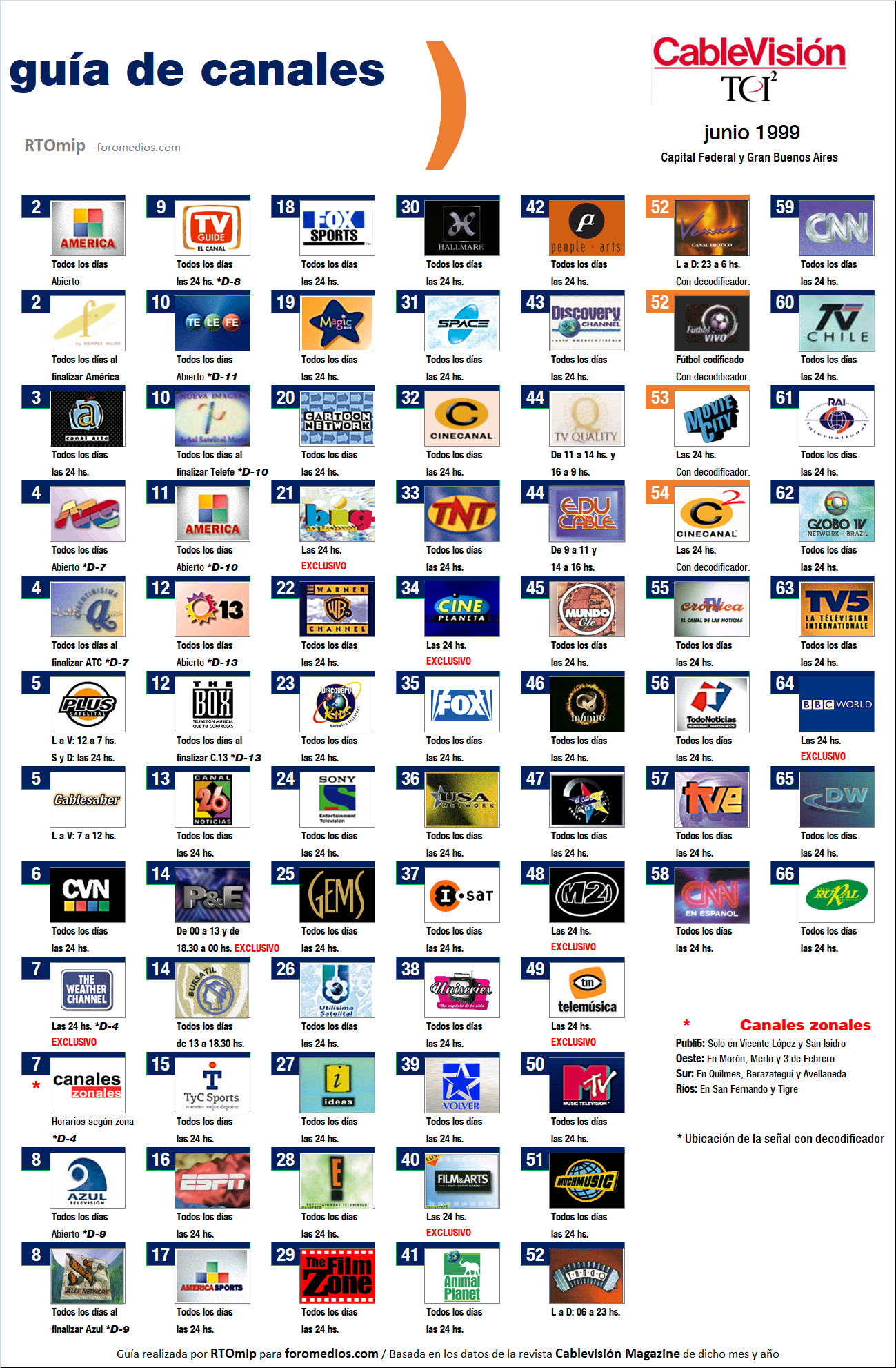 Continuando esta saga retro, toca el turno del mes de Junio de 1999, con algunas mínimas novedades y una simplificación por parte de CV en la forma de nombrar a sus canales zonales en la grilla