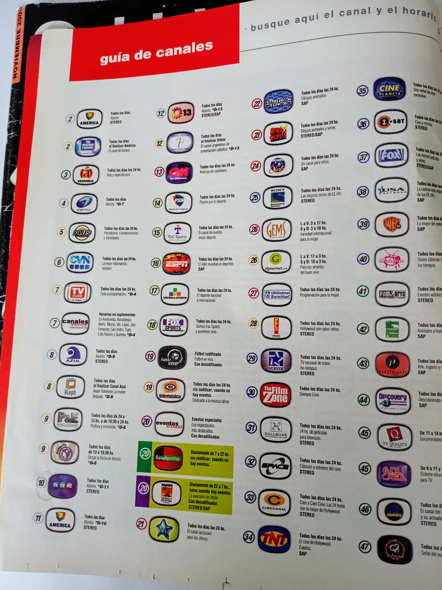 Y con respecto a lo de los canales compartidos, era una constante en el CV de ese entonces (y la competencia no se quedaba atrás), y se puede ver en esta grilla como estaban empezando a dejar de lado a M21 y Telemúsica, que ya para fines de ese año/inicios del 2001 quedarían relegados a canales de relleno en la trasnoche.