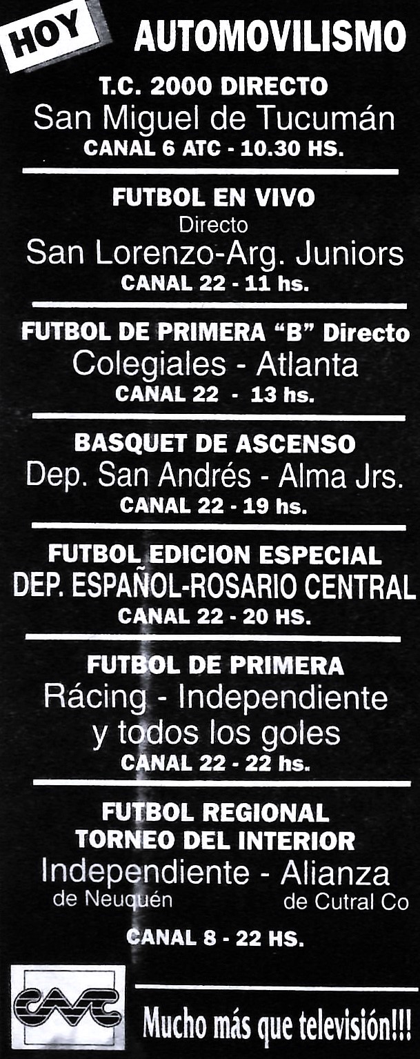 BONUS: un aviso de la empresa (con logo incluido) promocionando los eventos deportivos que se emitieron el domingo 31/10/1993.