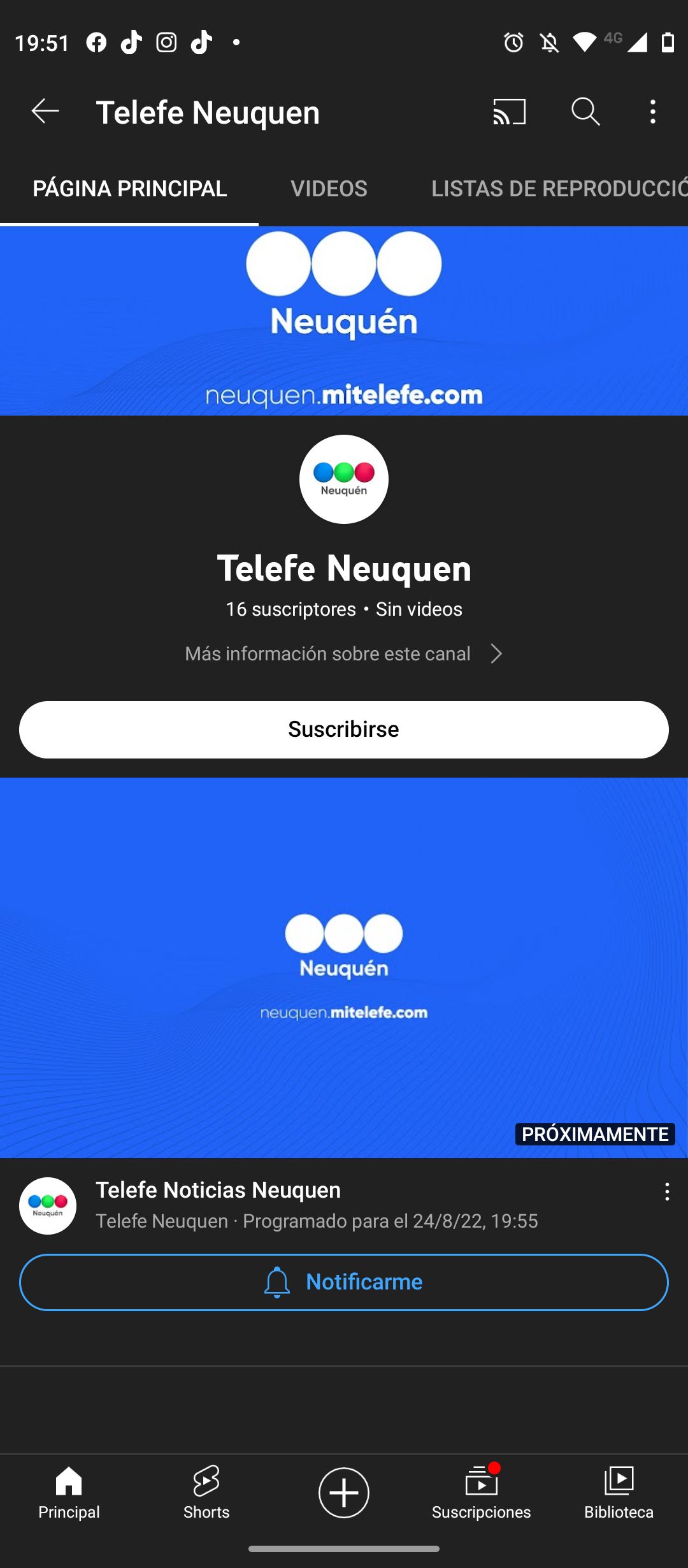 ahora Telefe Neuquén vuelve a YouTube tras el cierre de su cuenta anterior.