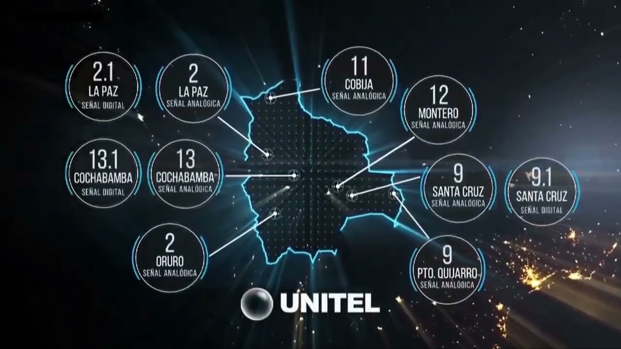 En el ID figuran las estaciones propias y da para ver que en SCZ, LPZ y CBBA hay TV digital, pero en el resto no. También da la idea de que Unitel no cubre todo el país ya que según la ATT, sólo mencionan las estaciones que son de esa tal ECOR.