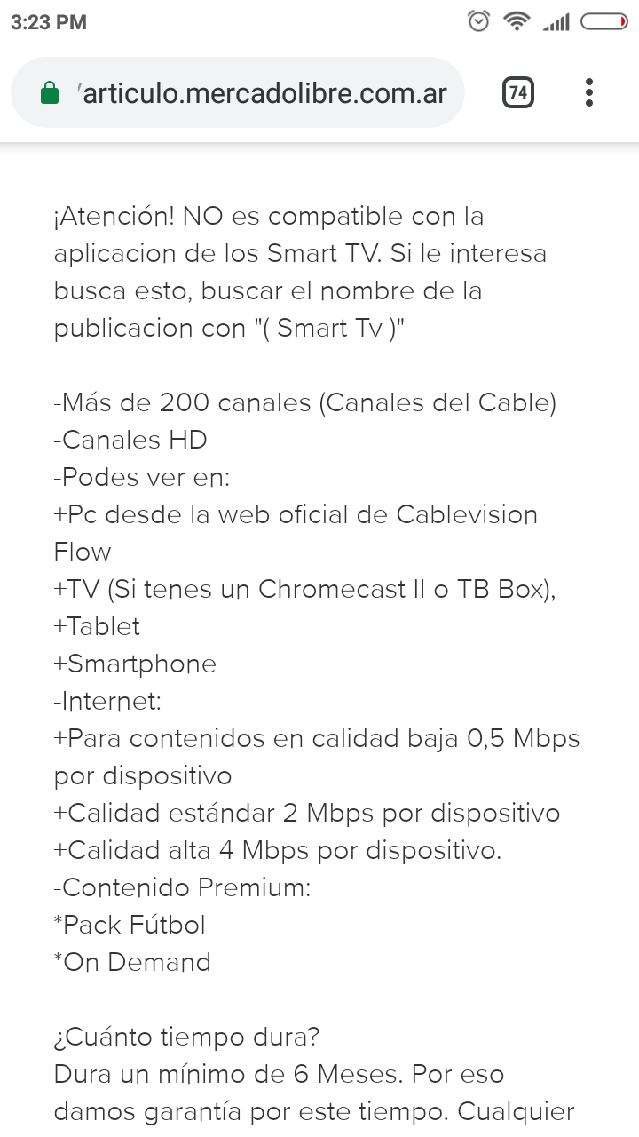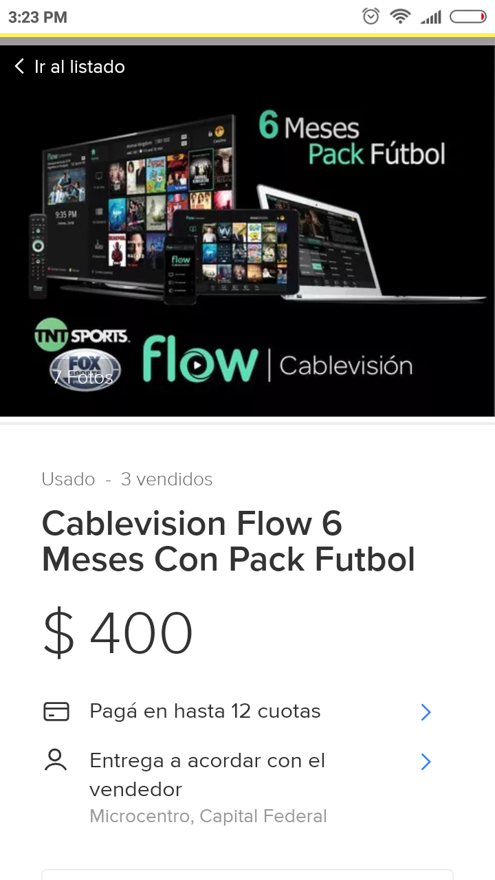 No es un vendedor de un producto oficial. Puede que sea alguien “de adentro” que filtra miles de cuentas, o bien fueron hackeadas. Suponiendo que sea un sistema similar a Netflix, cada usuario legítimo que paga el servicio tiene un límite de dispositivos en su cuenta. Si el usuario no le da uso frecuente o no está familiarizado con la tecnología puede que nunca se percate que un tercero usa su cuenta de Flow. Creo que corresponde denunciarlo para evitar estafas. Hay que ver los términos y condiciones de ML. Si no me equivoco, la única manera de acceder a la app legalmente sin ser cliente de Cablevisión es a través de Flow Box, ya que sólo requiere el STB con una buena conexión a internet. Es la oferta disponible al ingresar en la web https://cablevisionflow.com.ar/