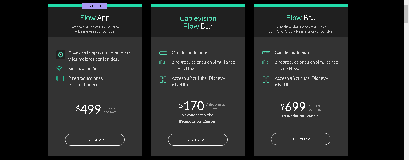 Desde hace unos dias, Flow App se encuentra disponible en Flow Uruguay a $499 por mes. Sino me equivoco, Cablevisión Flow Box ahora ya no es exclusivo de clientes de Cablevisión y Flow Box sigue igual, sin subir precio ni nada. Les consulté a través de Twitter a ver si llegan a departamentos donde no está disponible, y si, llega. No es por contrato, y se paga con tarjeta de crédito.