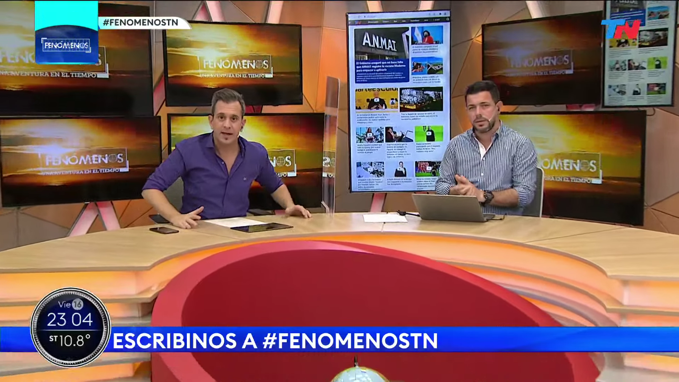 Desde hoy, TN utiliza las pantallas verticales del estudio para colocar su sitio web. Acá, algunas capturas que hice: