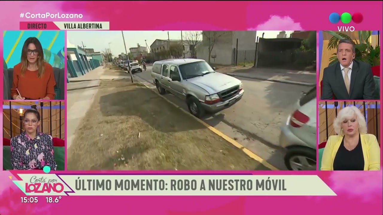 Durante una cobertura por un hecho policial en vivo desde Villa Albertina, partido de Lomas de Zamora, dos ladrones armados que se movilizaban en bicicleta rompieron la puerta de la camioneta de Telefe y se robaron una caja de herramientas, pertenencias y equipos técnicos. Previamente al hecho, el cronista Heber Ybañez mostró que la Policía Local no podía tomar una denuncia por la desaparición de una mujer y sus 3 hijos. Todo salió en vivo durante Cortá por Lozano.