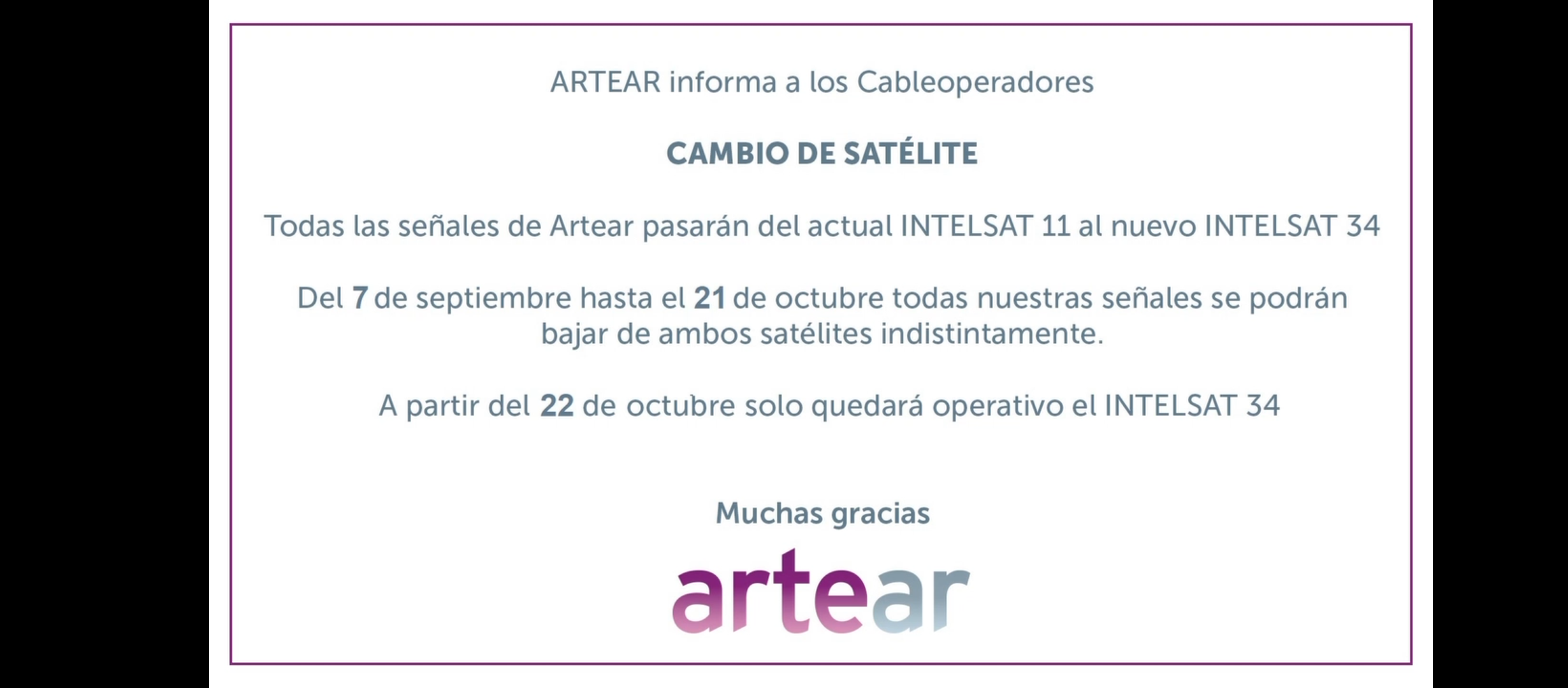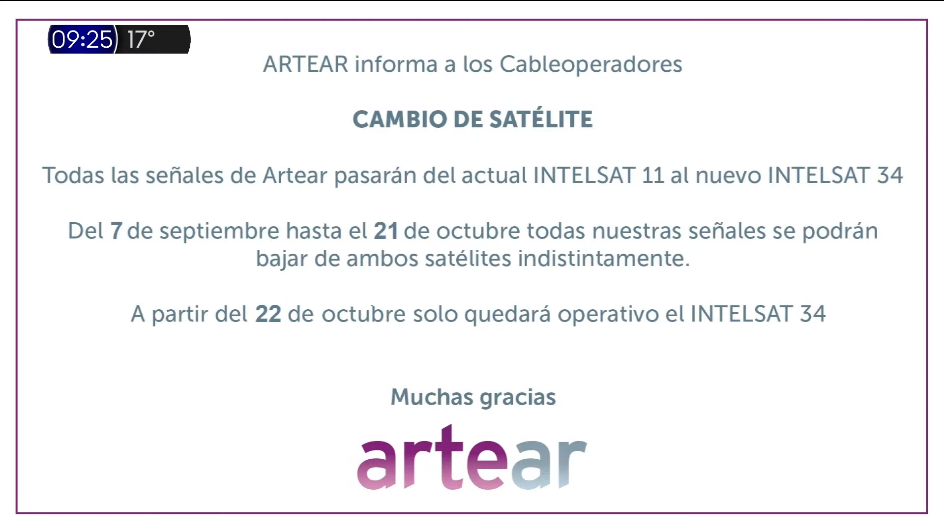 El mensaje sale en todos los canales de Artear que se distribuyen por cable. Espero que de esta forma se deje de cortar a cada rato el satelite de Eltrece Satelital y poder ver un programa en continuado.
