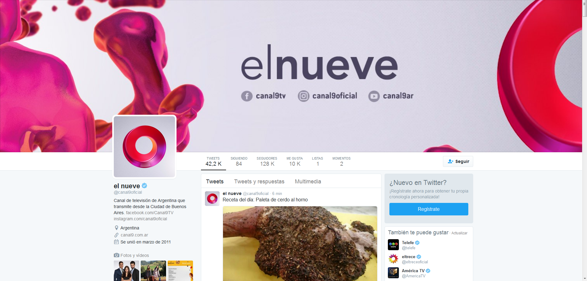 La cuenta oficial de Twitter de Canal 9, se renovo con la nueva imagen que se estrenaria en 2017.