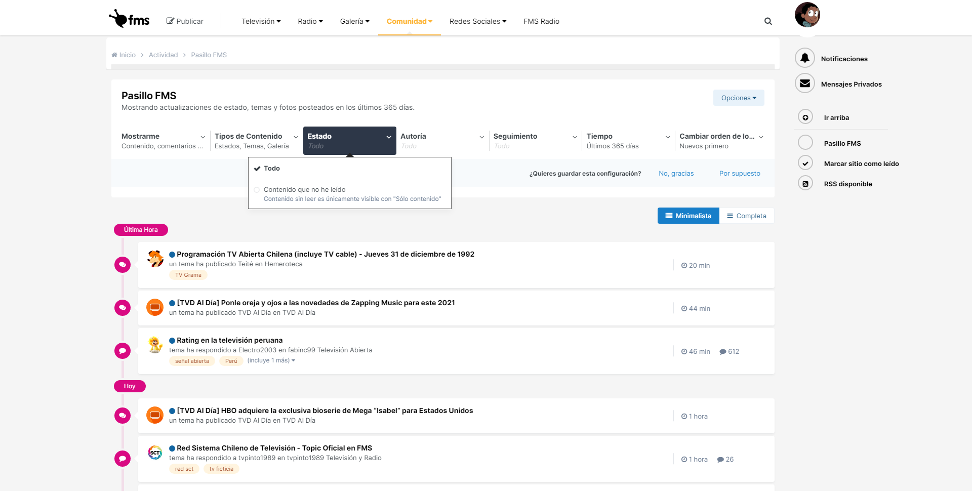 Corroborados cambios de estado de Pasillo FMS y etiqueta de radio “Contenido que no he leído”