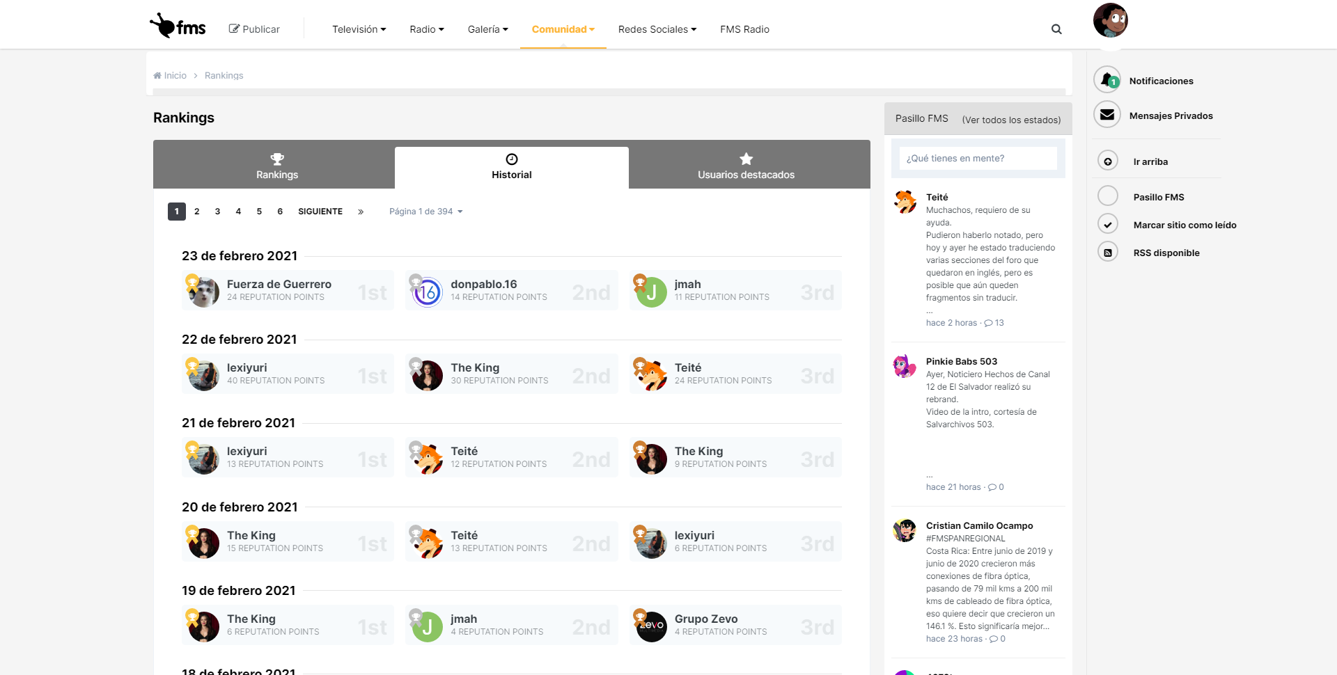 Comunidad > Rankings > Historial