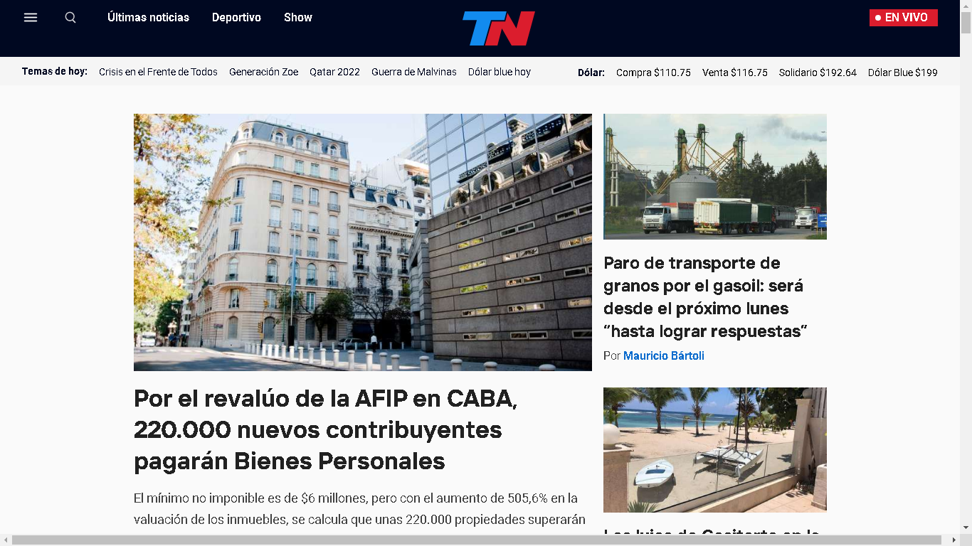 Status: Nueva interfaz de la web de TN, está muy buena. ...