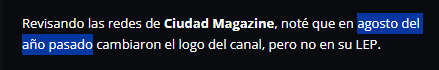 Revisando las redes de Ciudad Magazine, noté que en agosto del año pasado cambiaron el logo del canal, pero no en su LEP.